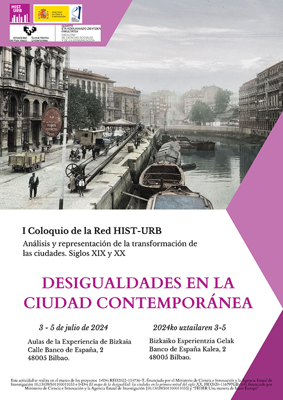 - Por una parte, el proyecto de investigación PID2020-116797GB-I00, El mapa de la desigualdad: las ciudades en la primera mitad del siglo XX. Este proyecto finaliza en agosto de 2024, y la Jornada debe significar la materialización de los principales objetivos de investigación propuestos. Estos giraban en tres ejes temáticos: Desigualdades sociales en la ciudad, Vivienda y desigualdad en el entorno urbano; y Sanidad y mortalidad.