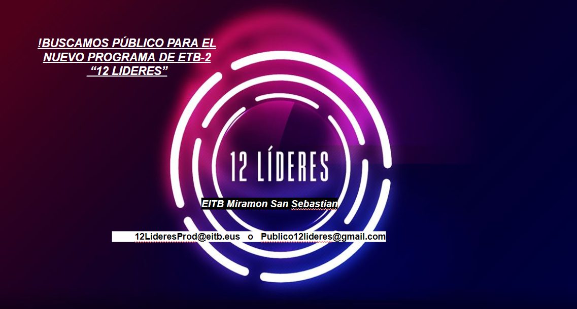 ¡Buscamos 30 personas para asistir de público al nuevo programa de EITB2 “12 LIDERES”!