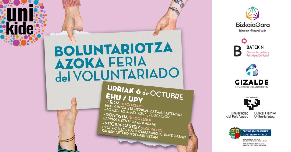 El próximo 6 de octubre, de 10:00 a 14:00 horas, celebramos la V feria del Voluntariado 2022 en los tres campus de la UPV/EHU: