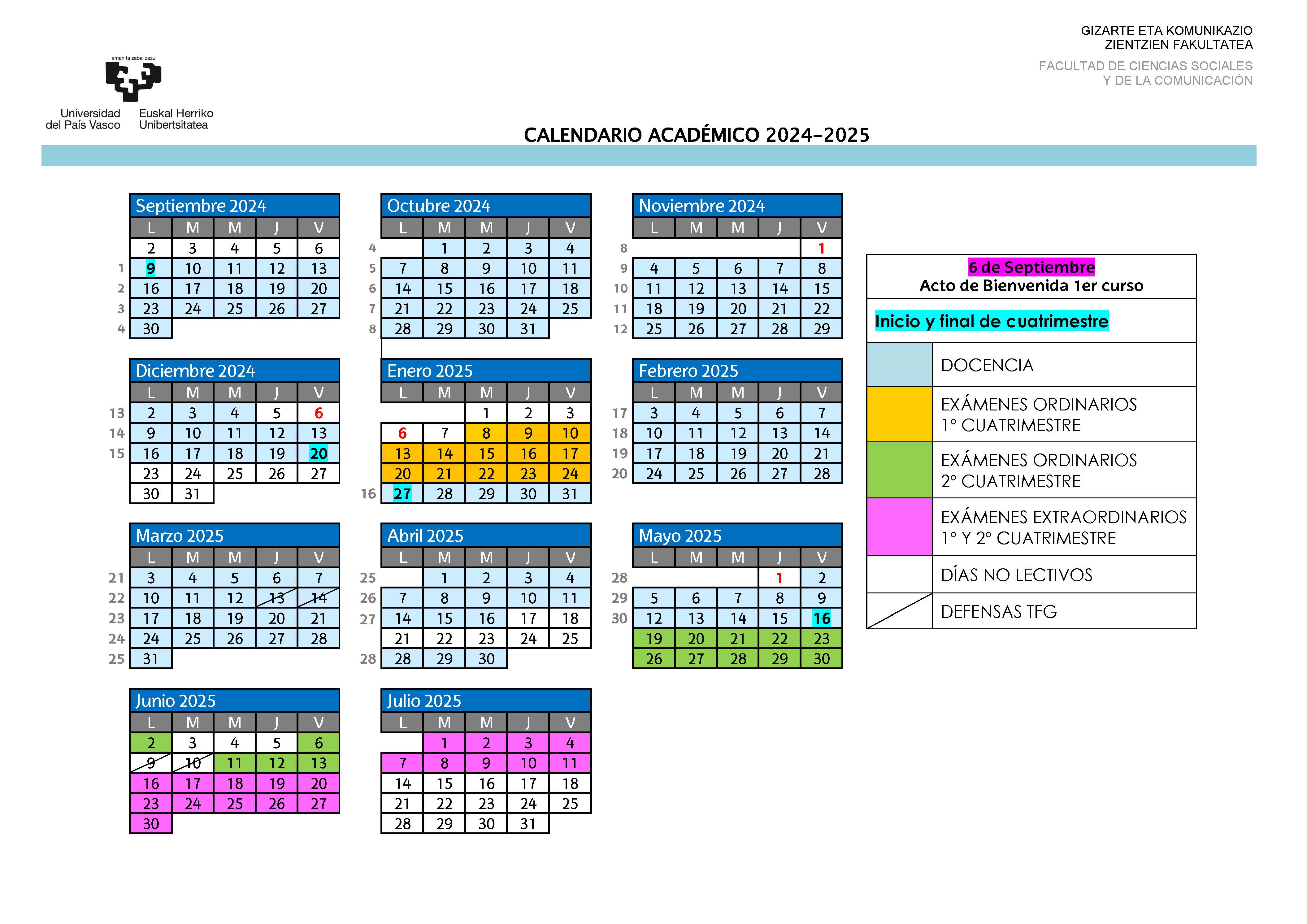 La matrícula se realizará On-Line entre los días 18 y 24 de julio de 2025 (ambos inclusive), conforme a la cita previamente publicada en la página web de la universidad (fecha y hora) – www.ehu.es.