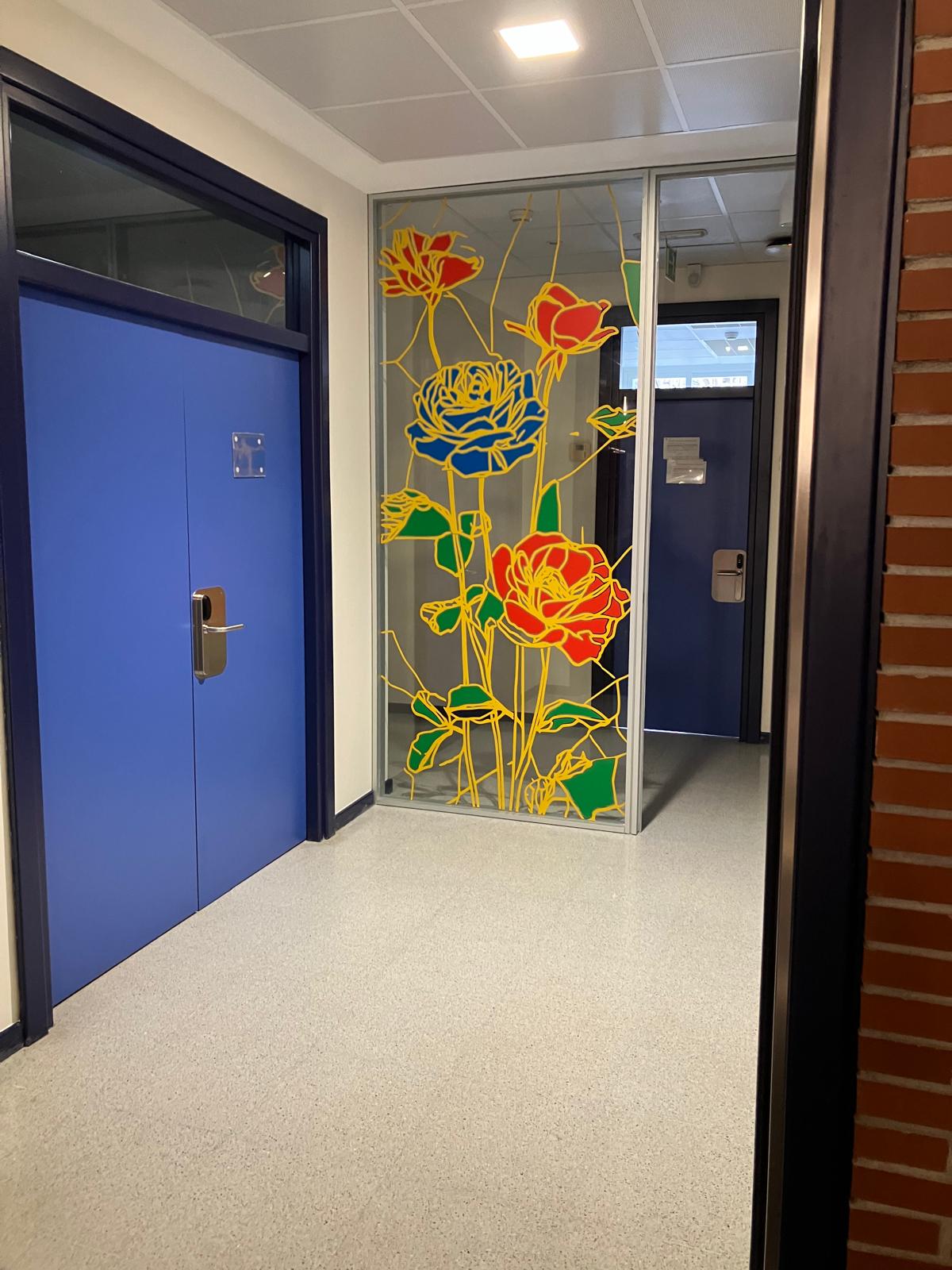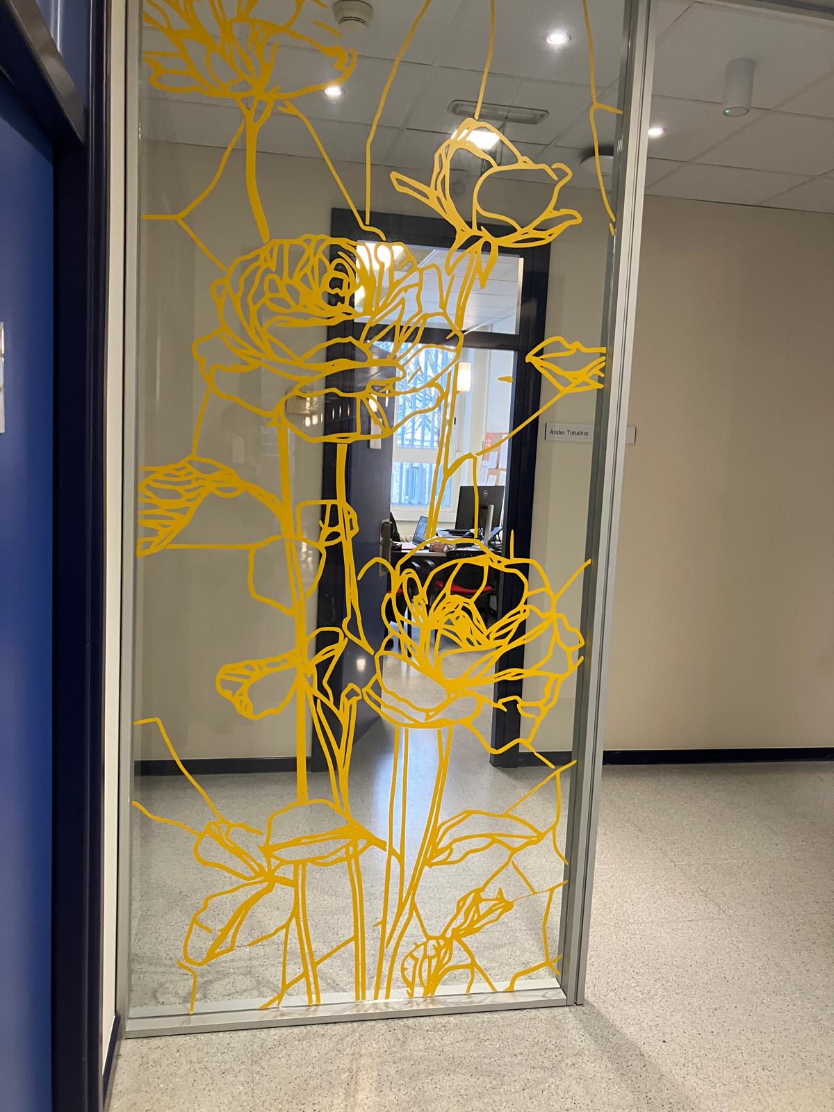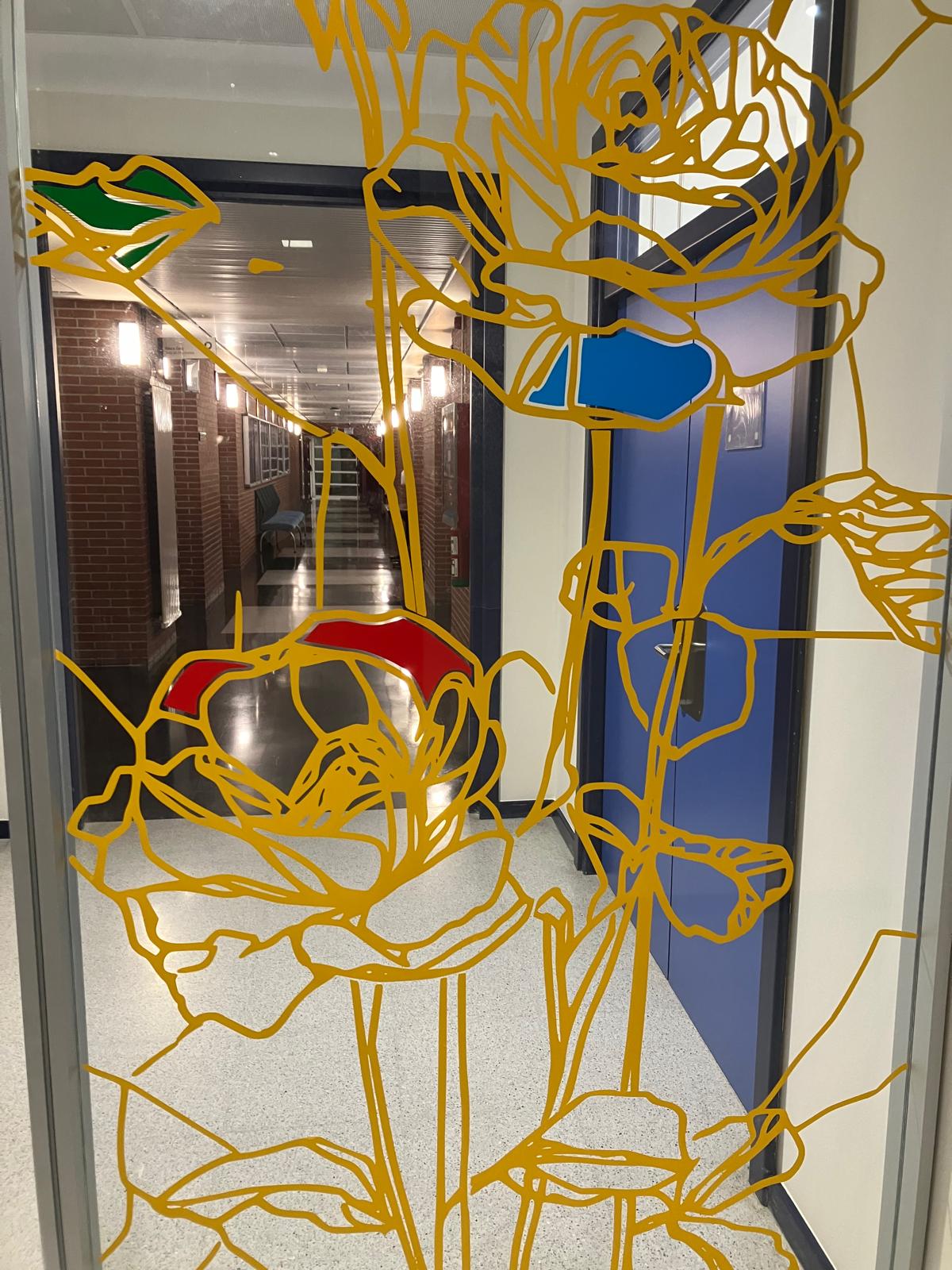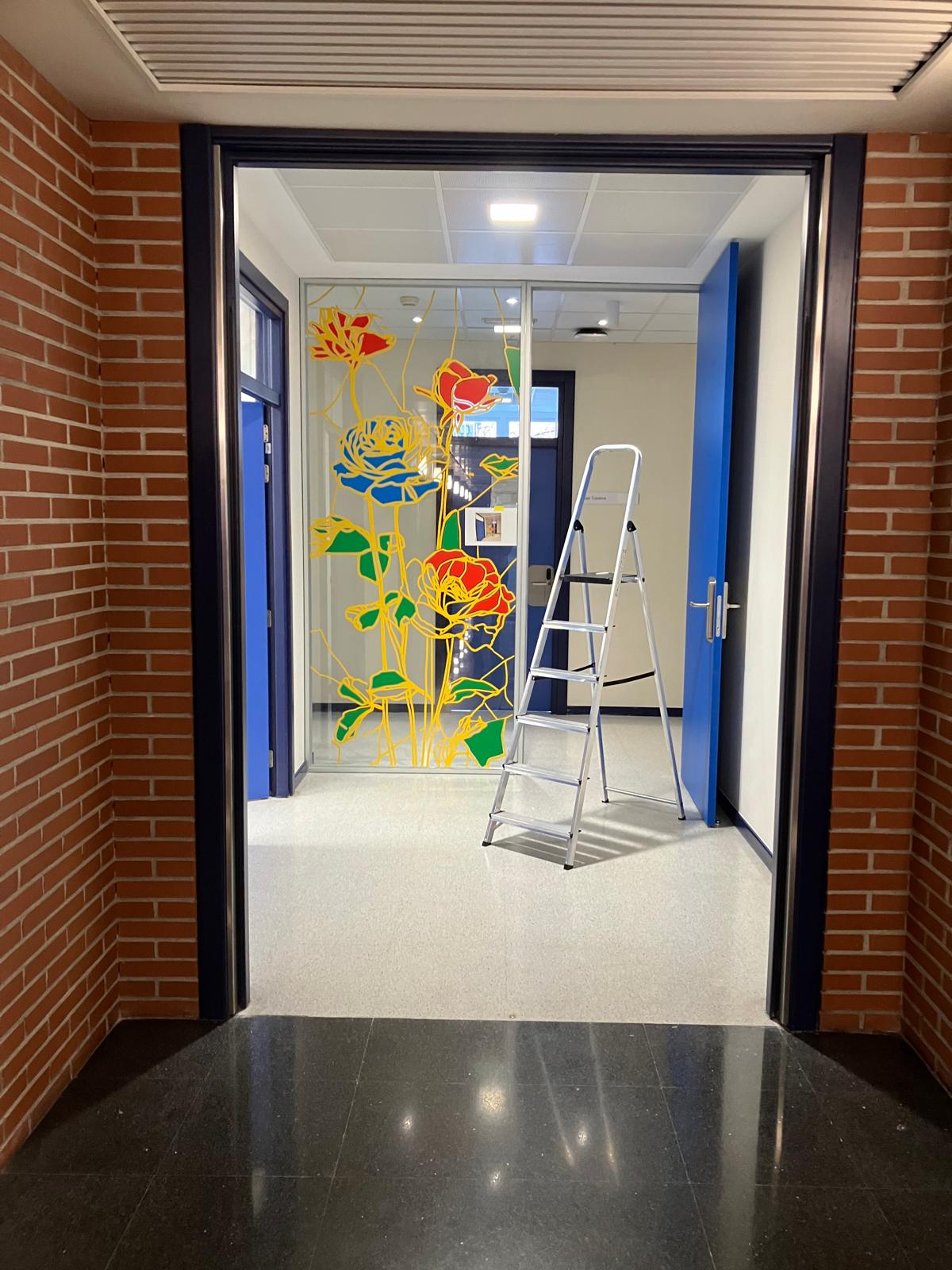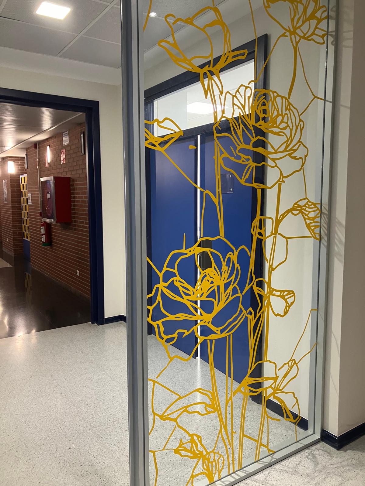 La elección de una iconografía floral —simple, abierta y luminosa— introduce una dimensión poética y cercana en un entorno académico, generando una recepción positiva y alegre por parte del profesorado y de quienes transitan el espacio. La obra no interrumpe el uso funcional del lugar, sino que lo acompaña y lo enriquece, convirtiendo el tránsito cotidiano en una experiencia visual compartida.