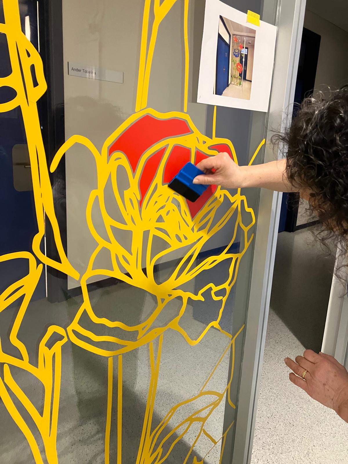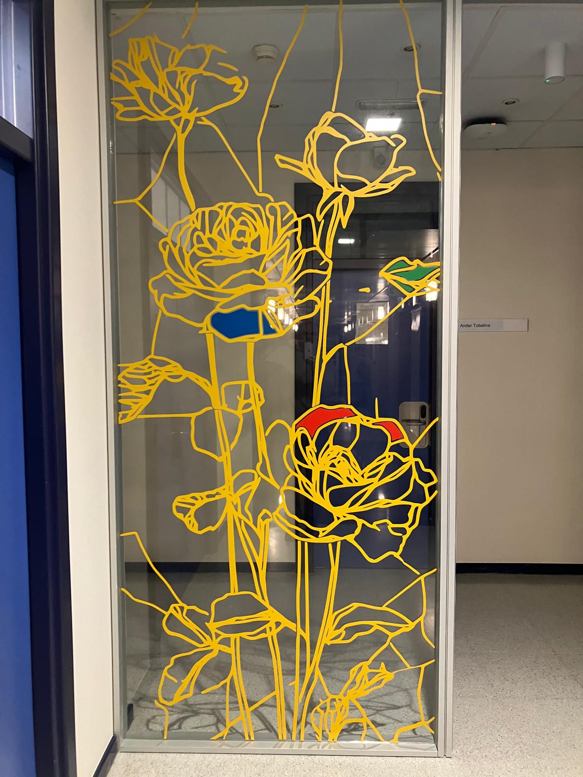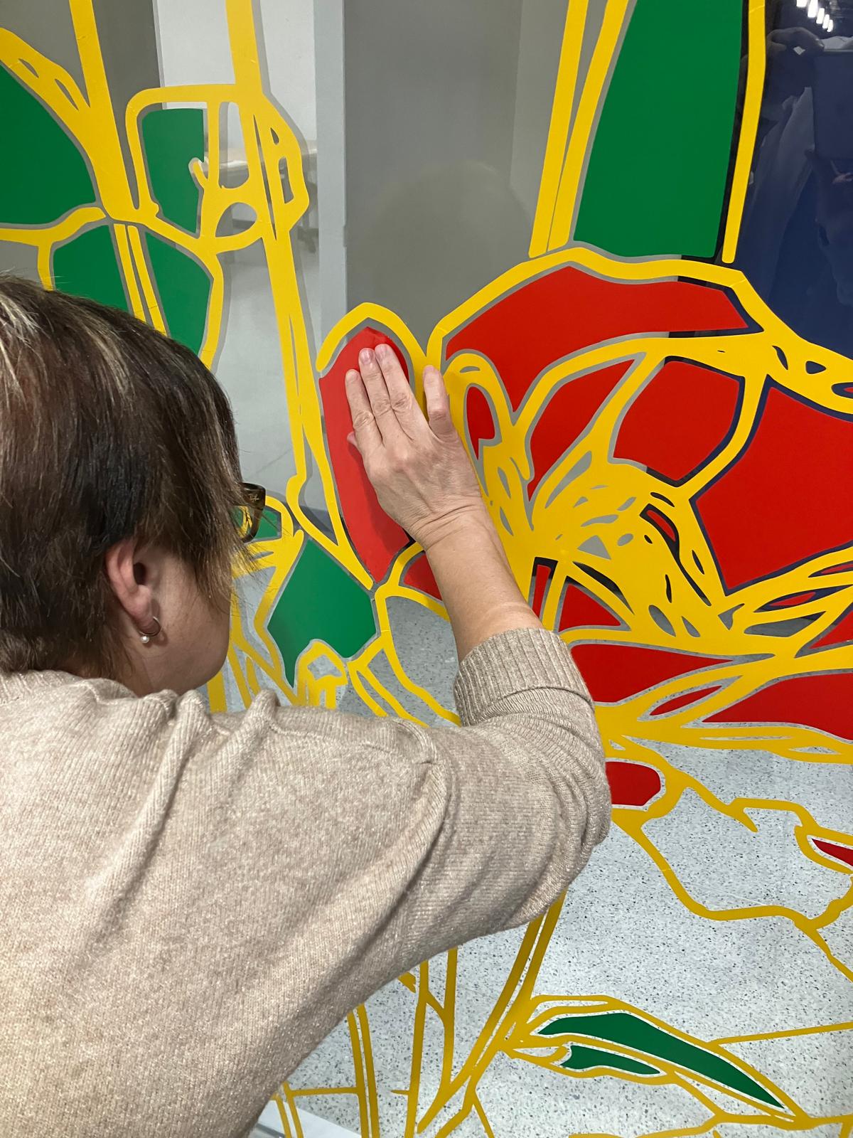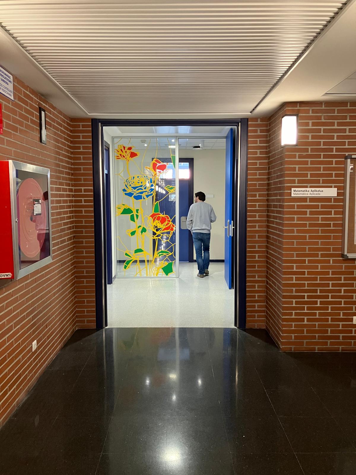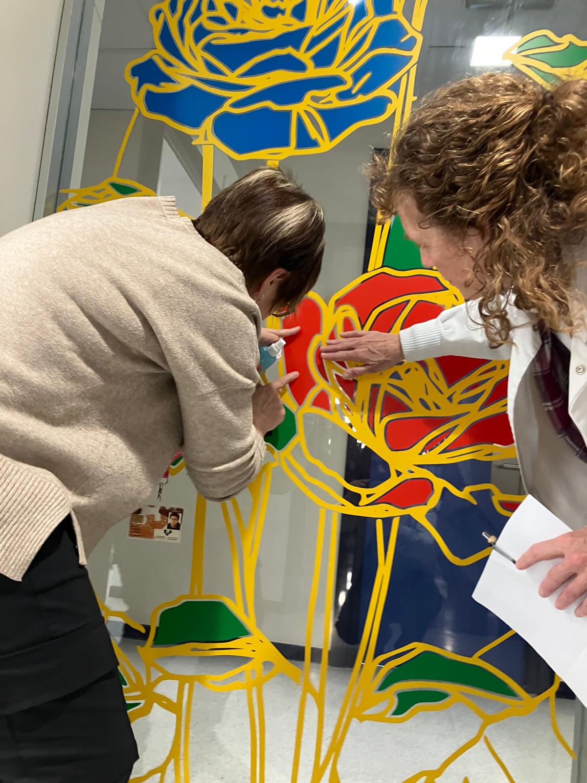La elección de una iconografía floral —simple, abierta y luminosa— introduce una dimensión poética y cercana en un entorno académico, generando una recepción positiva y alegre por parte del profesorado y de quienes transitan el espacio. La obra no interrumpe el uso funcional del lugar, sino que lo acompaña y lo enriquece, convirtiendo el tránsito cotidiano en una experiencia visual compartida.
