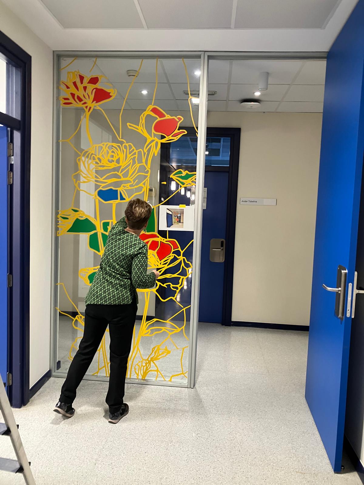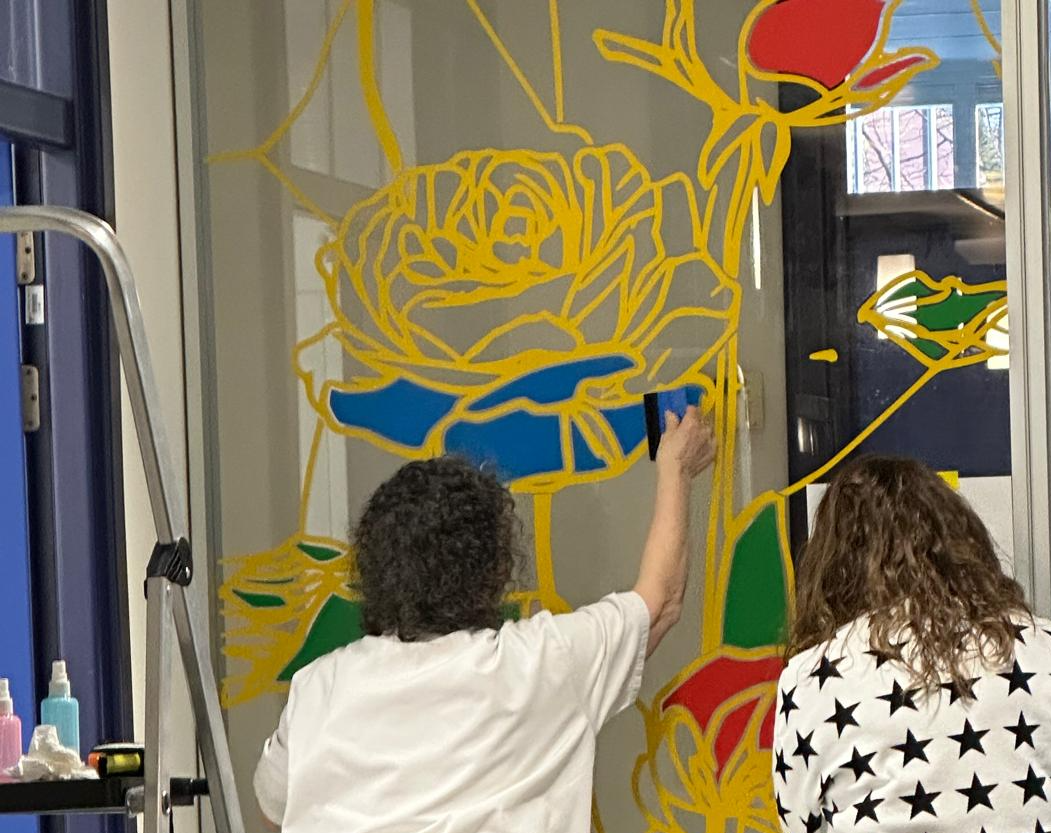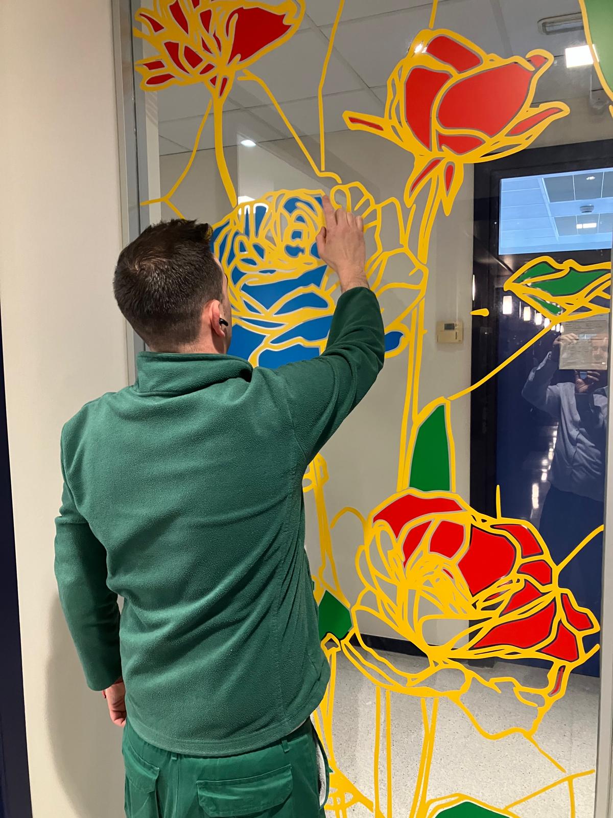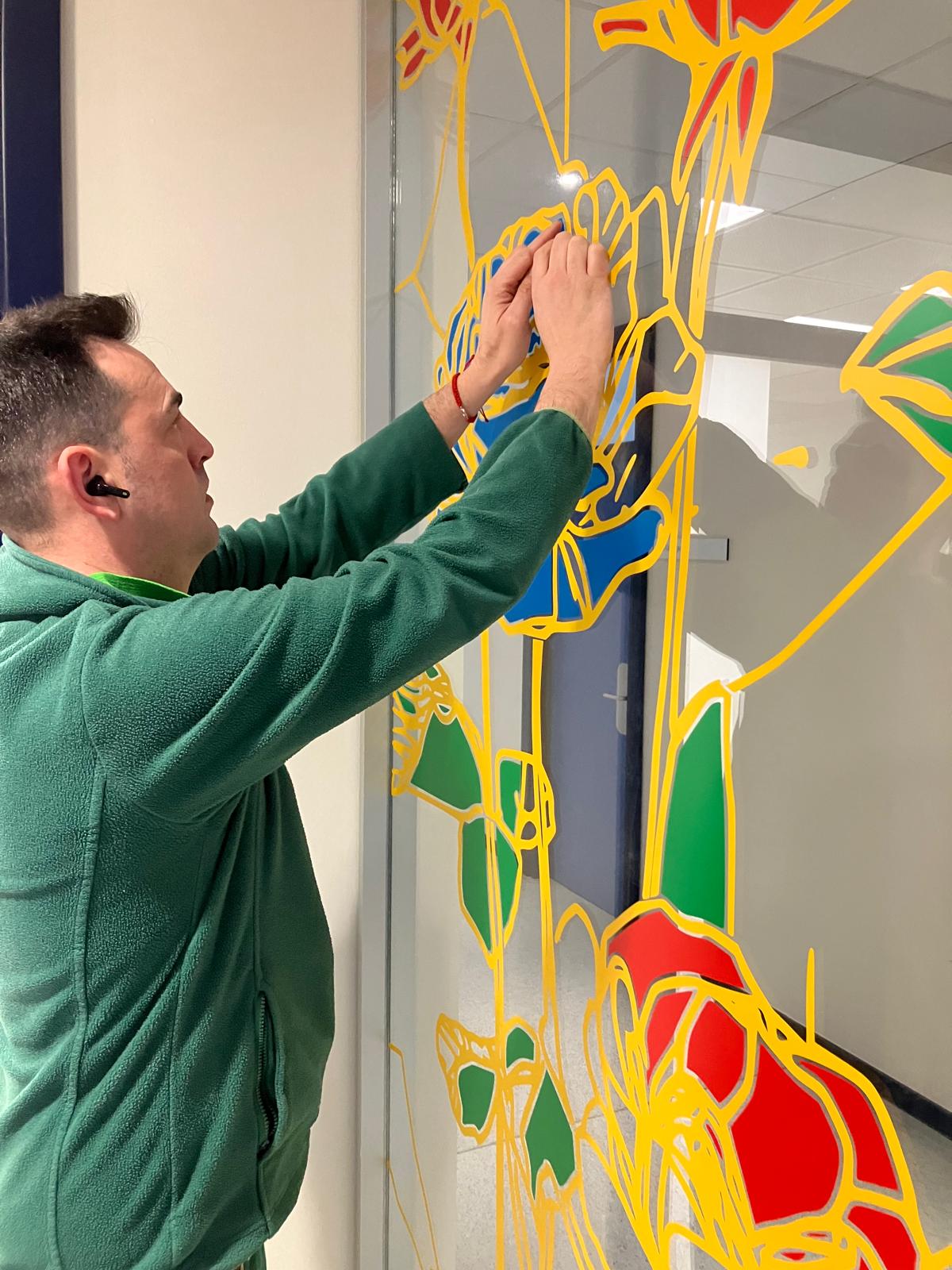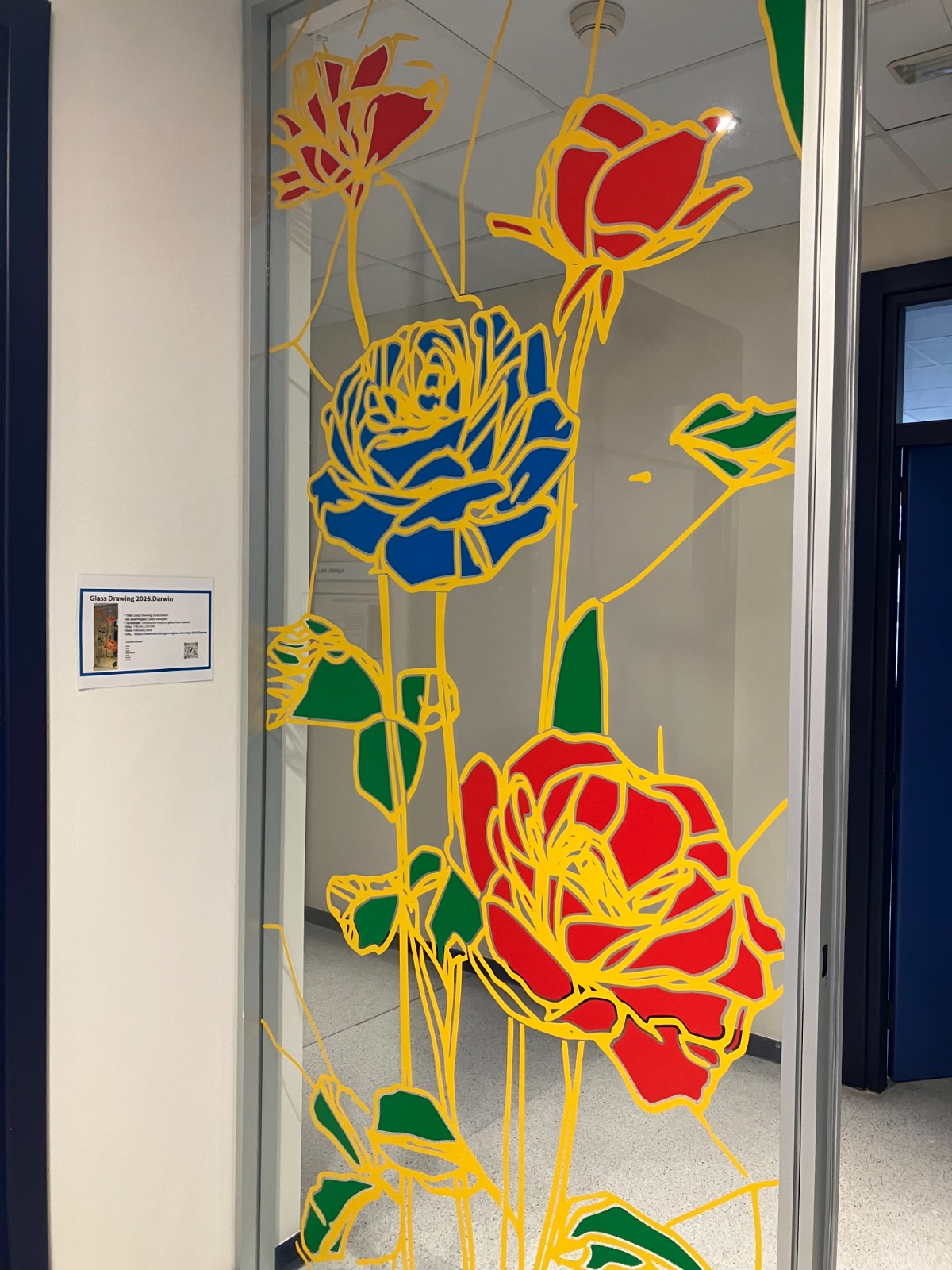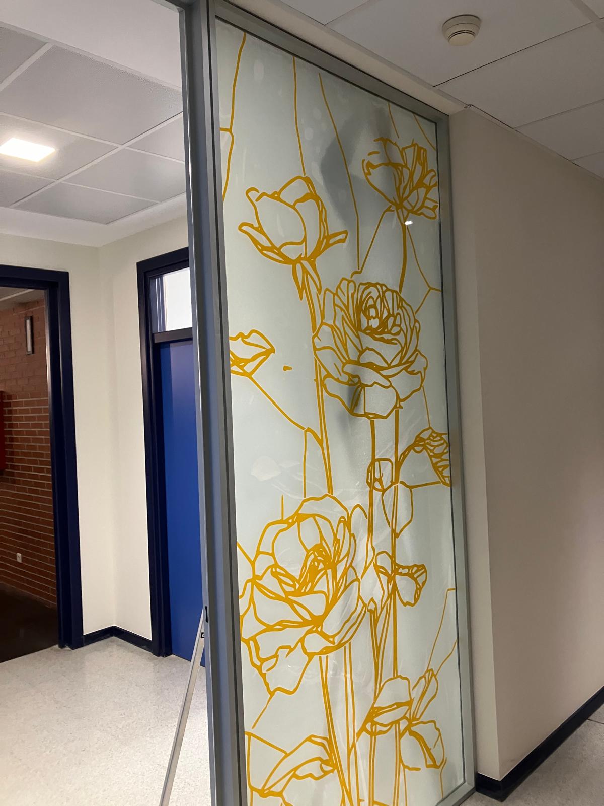 La elección de una iconografía floral —simple, abierta y luminosa— introduce una dimensión poética y cercana en un entorno académico, generando una recepción positiva y alegre por parte del profesorado y de quienes transitan el espacio. La obra no interrumpe el uso funcional del lugar, sino que lo acompaña y lo enriquece, convirtiendo el tránsito cotidiano en una experiencia visual compartida.