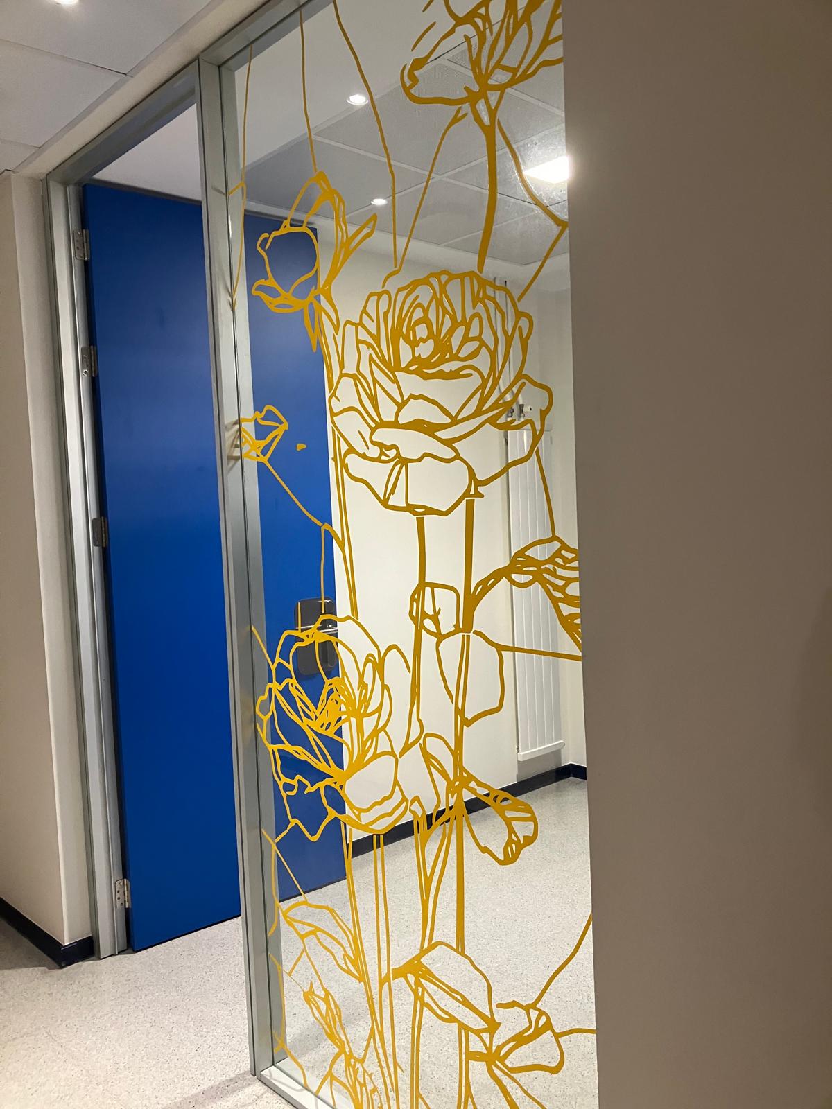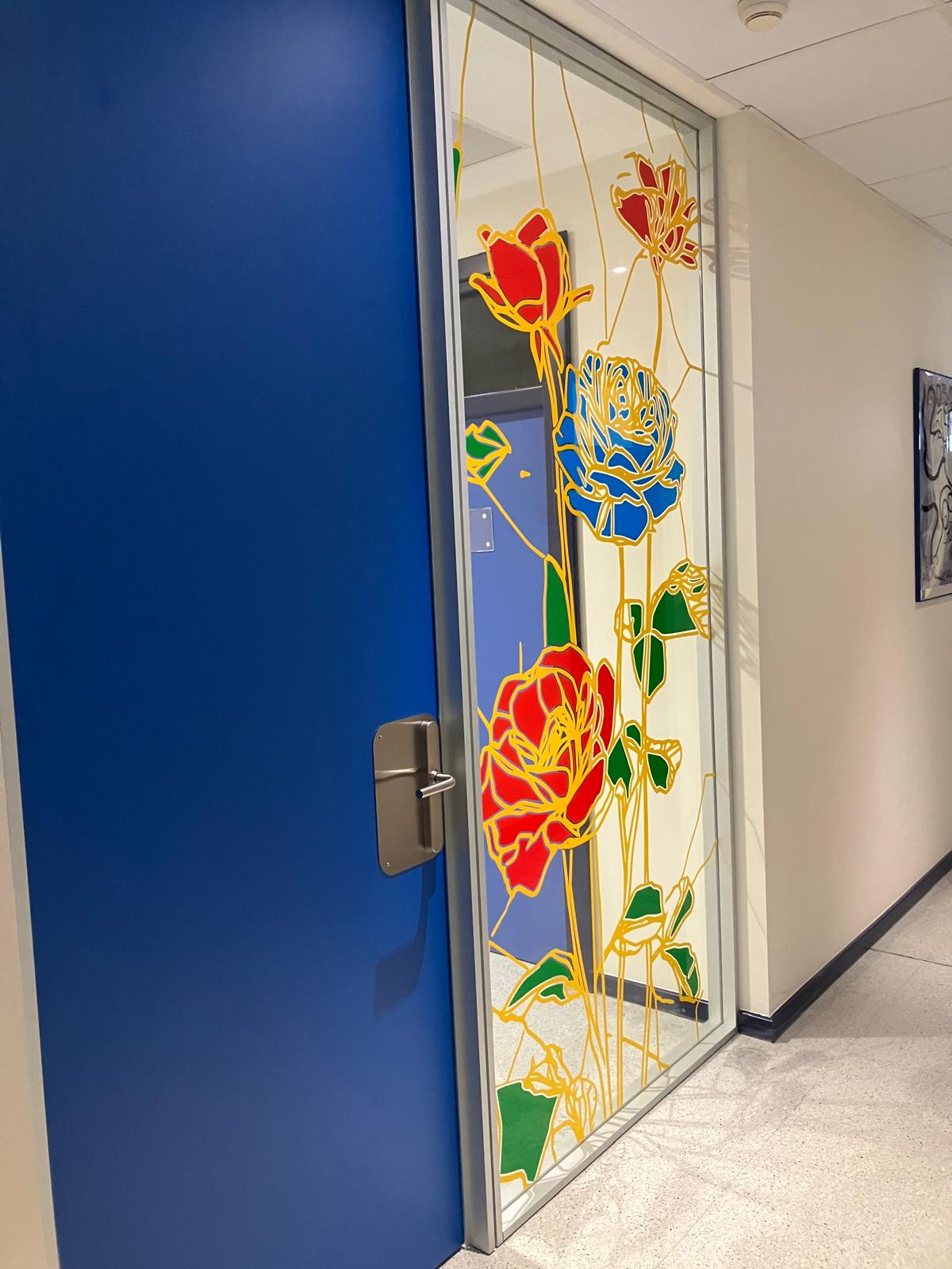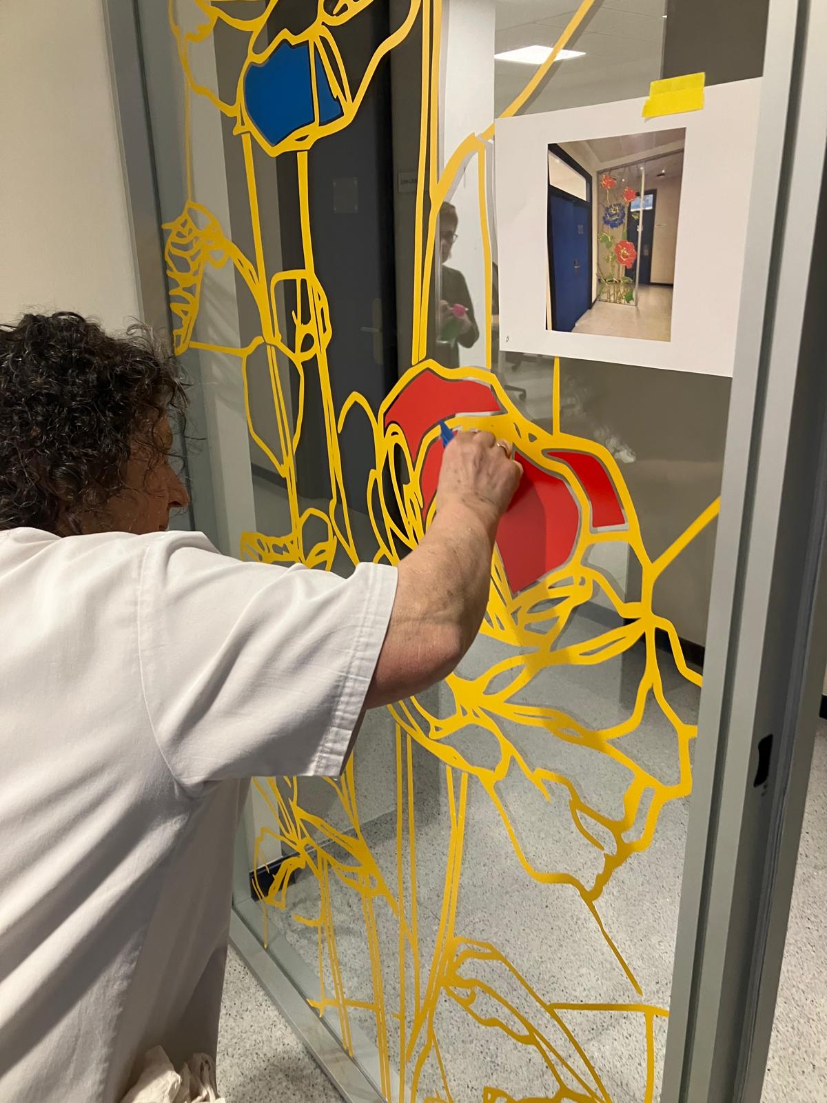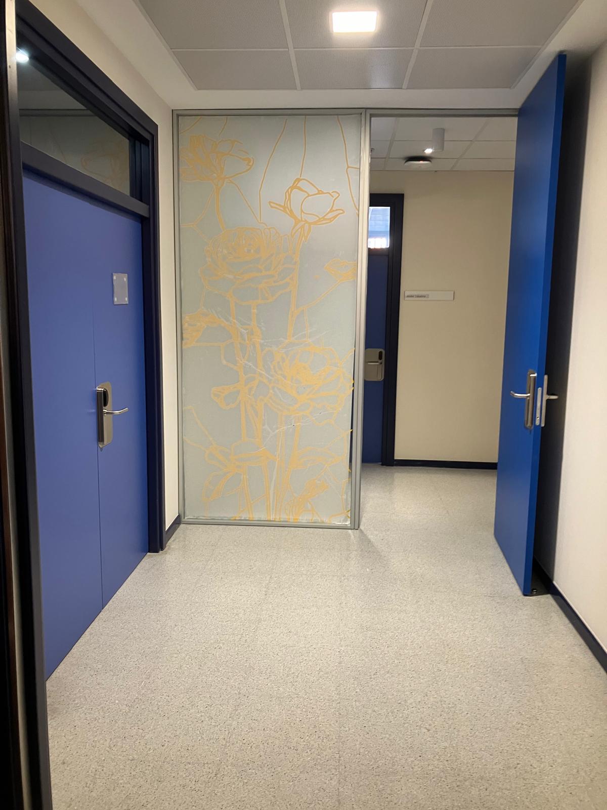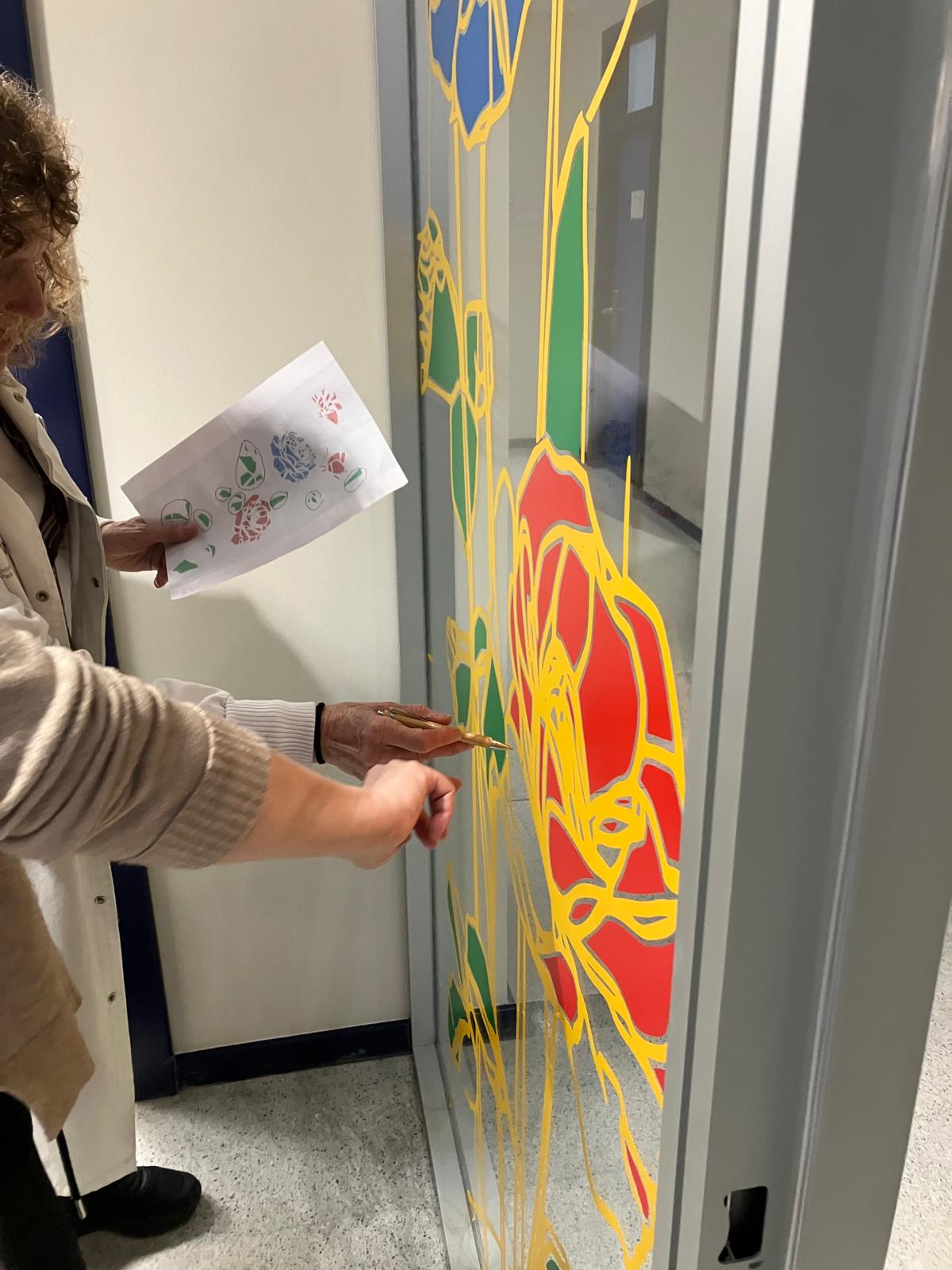 La elección de una iconografía floral —simple, abierta y luminosa— introduce una dimensión poética y cercana en un entorno académico, generando una recepción positiva y alegre por parte del profesorado y de quienes transitan el espacio. La obra no interrumpe el uso funcional del lugar, sino que lo acompaña y lo enriquece, convirtiendo el tránsito cotidiano en una experiencia visual compartida.