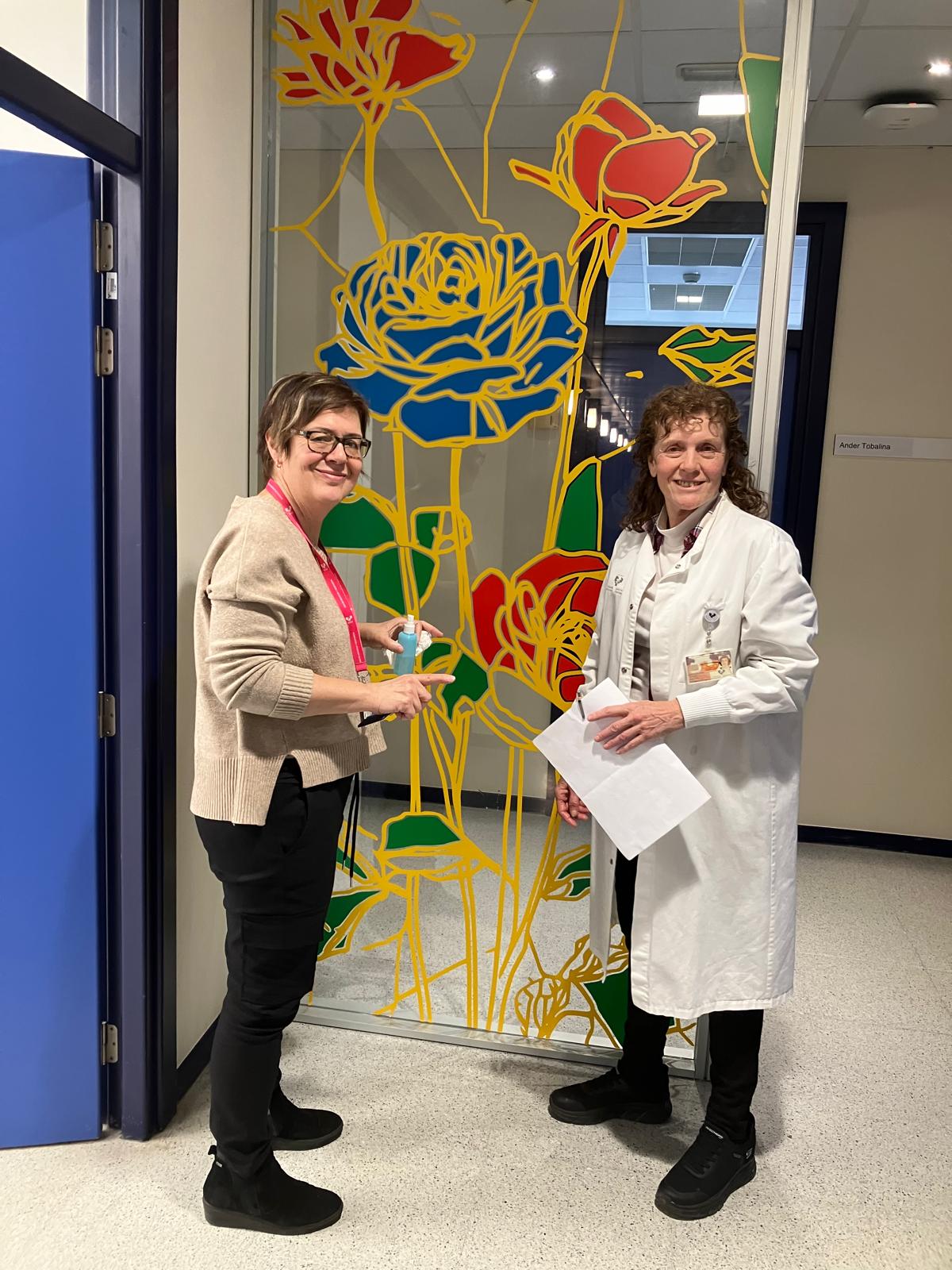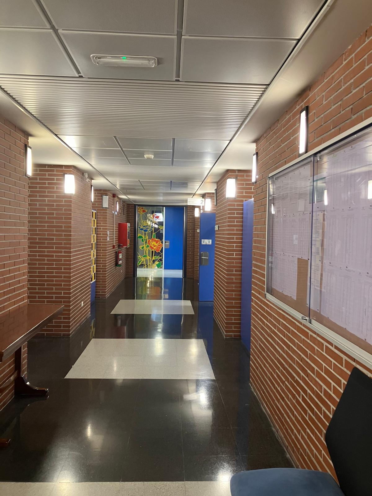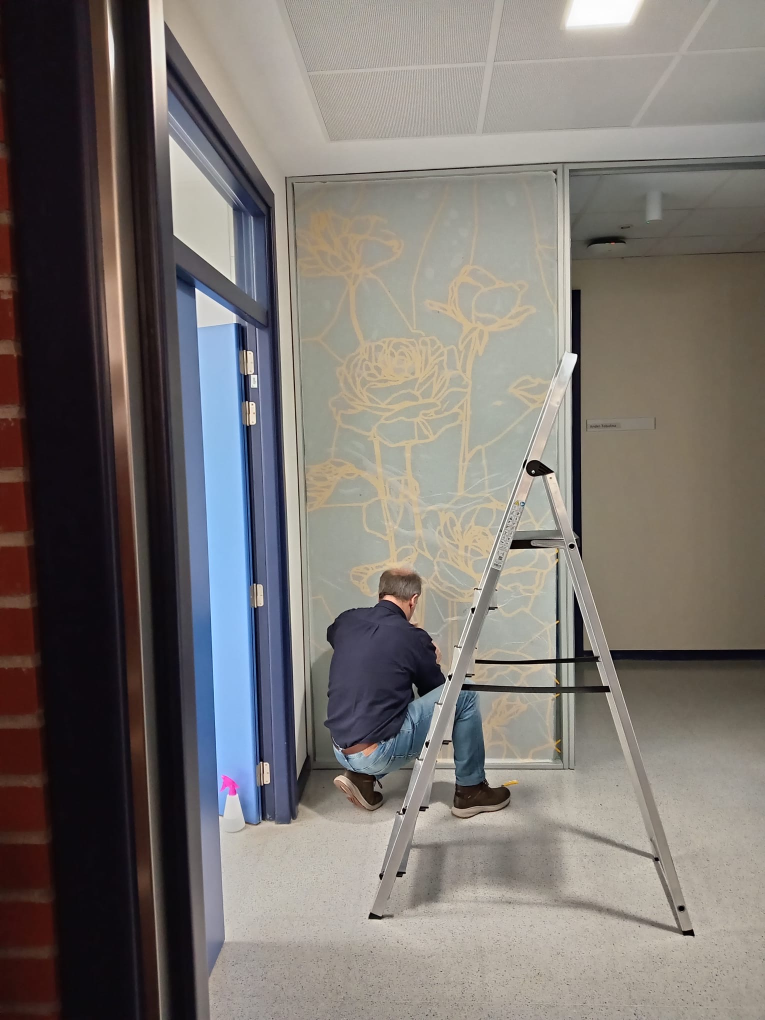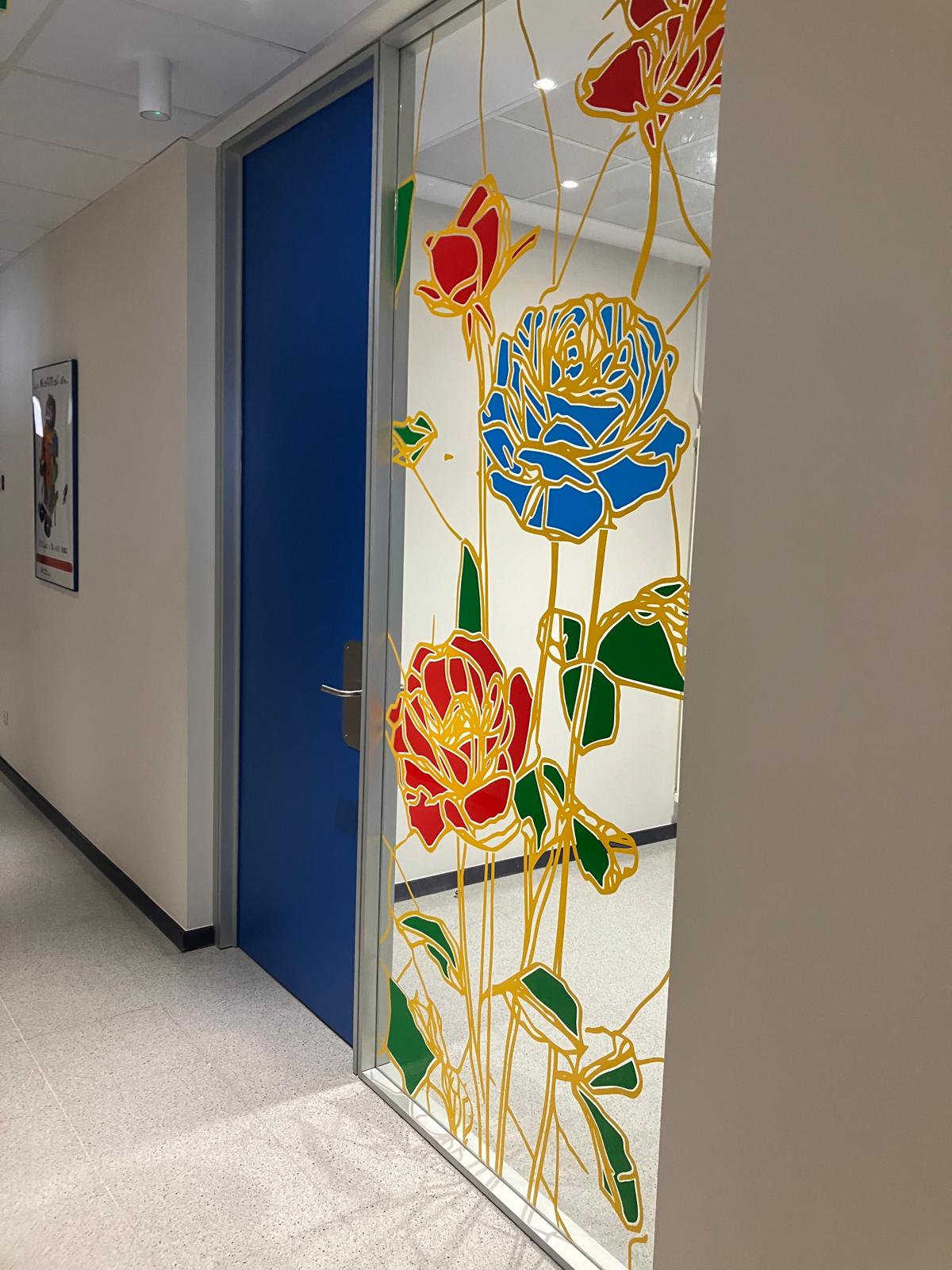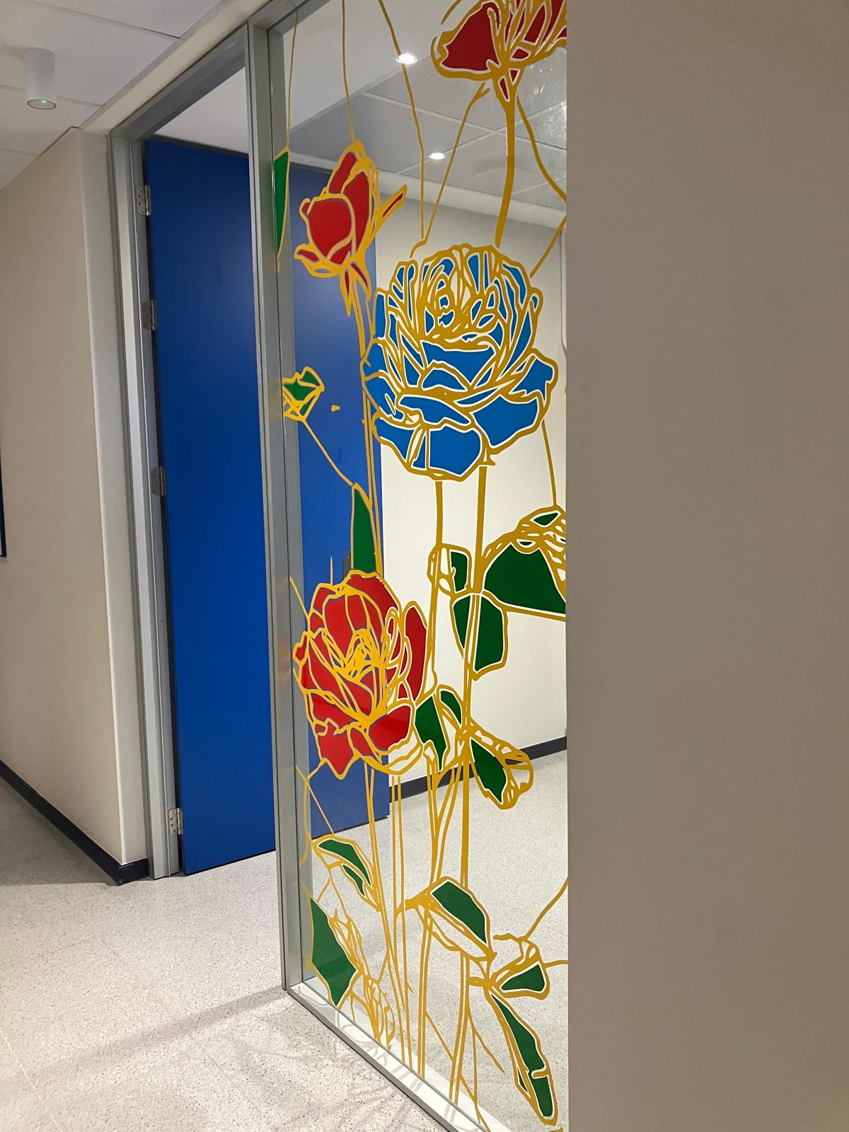 La elección de una iconografía floral —simple, abierta y luminosa— introduce una dimensión poética y cercana en un entorno académico, generando una recepción positiva y alegre por parte del profesorado y de quienes transitan el espacio. La obra no interrumpe el uso funcional del lugar, sino que lo acompaña y lo enriquece, convirtiendo el tránsito cotidiano en una experiencia visual compartida.