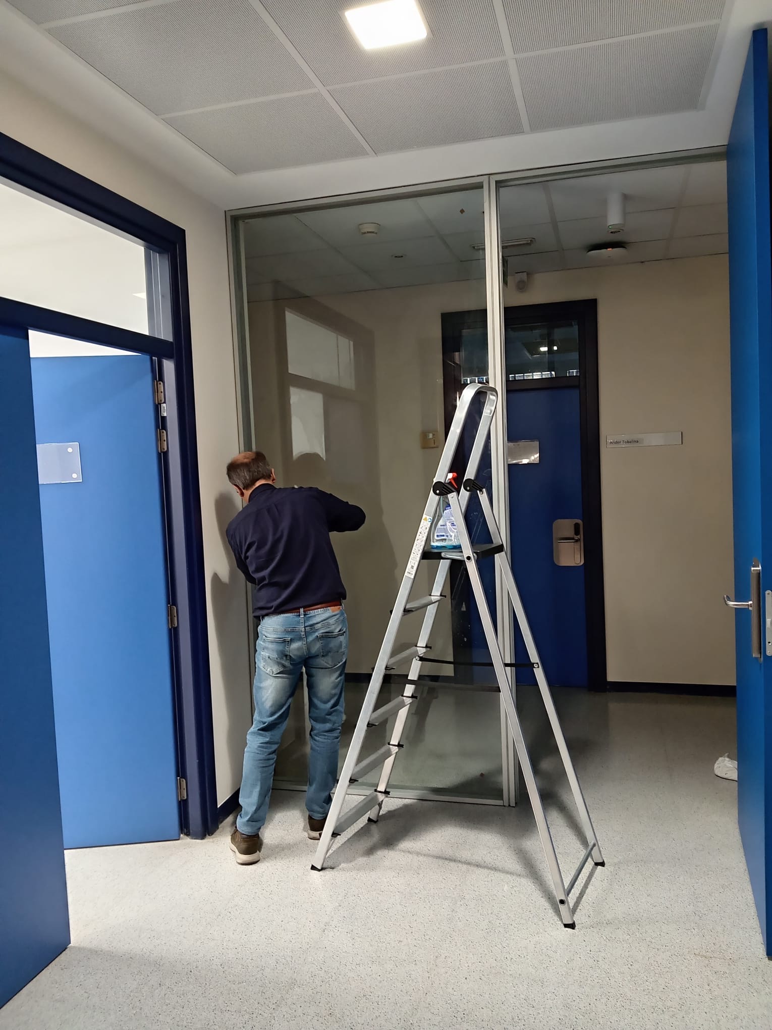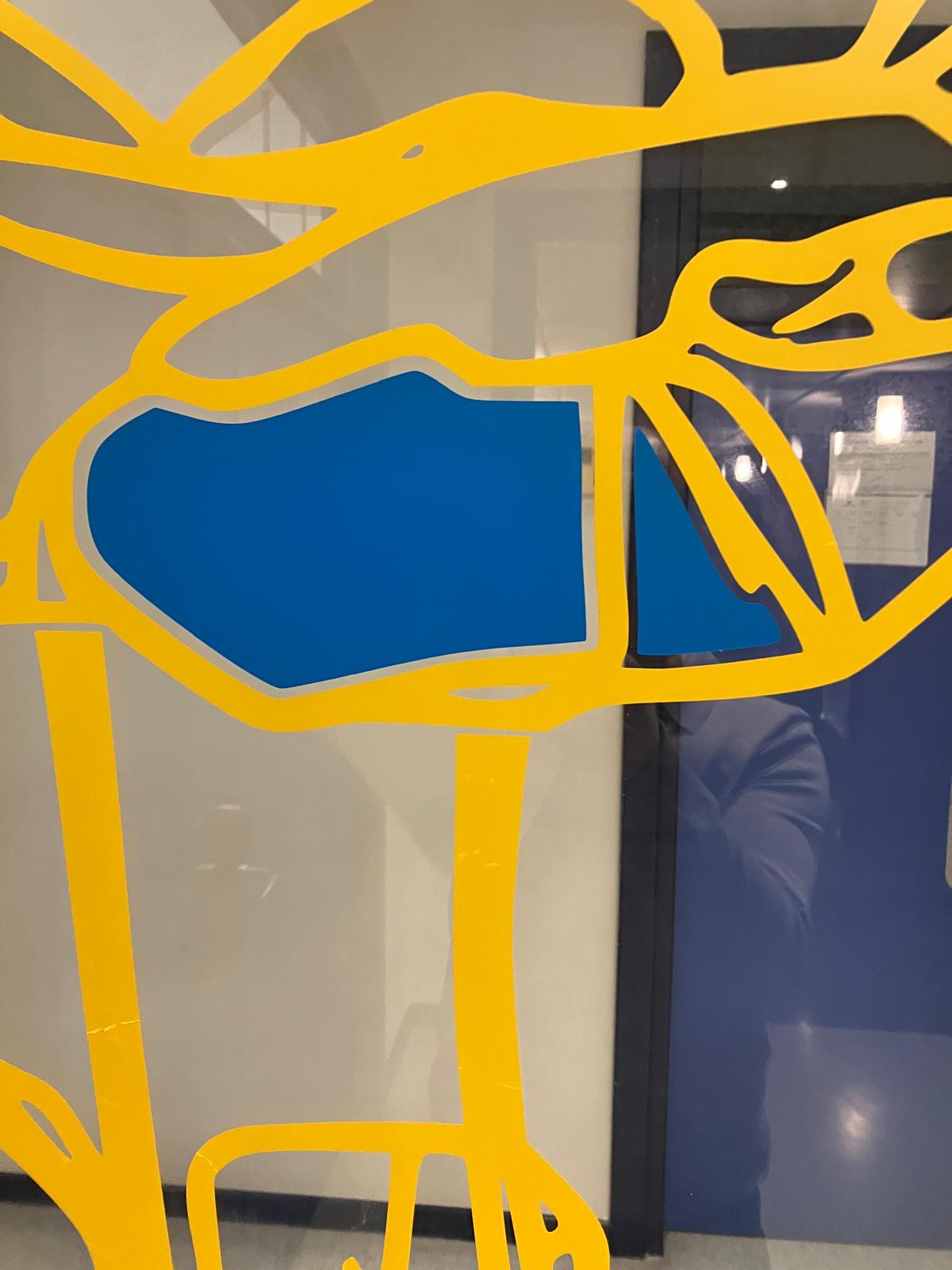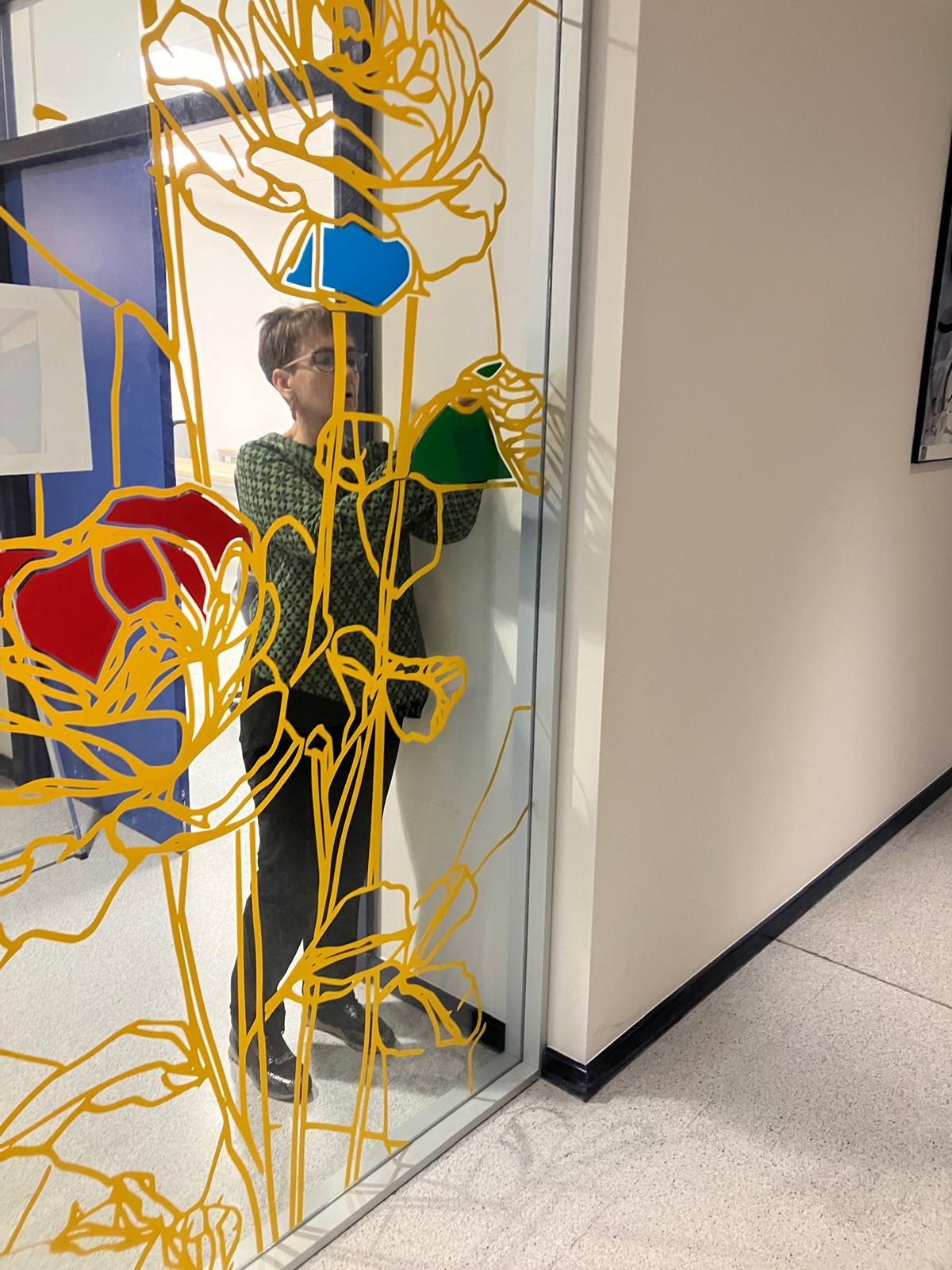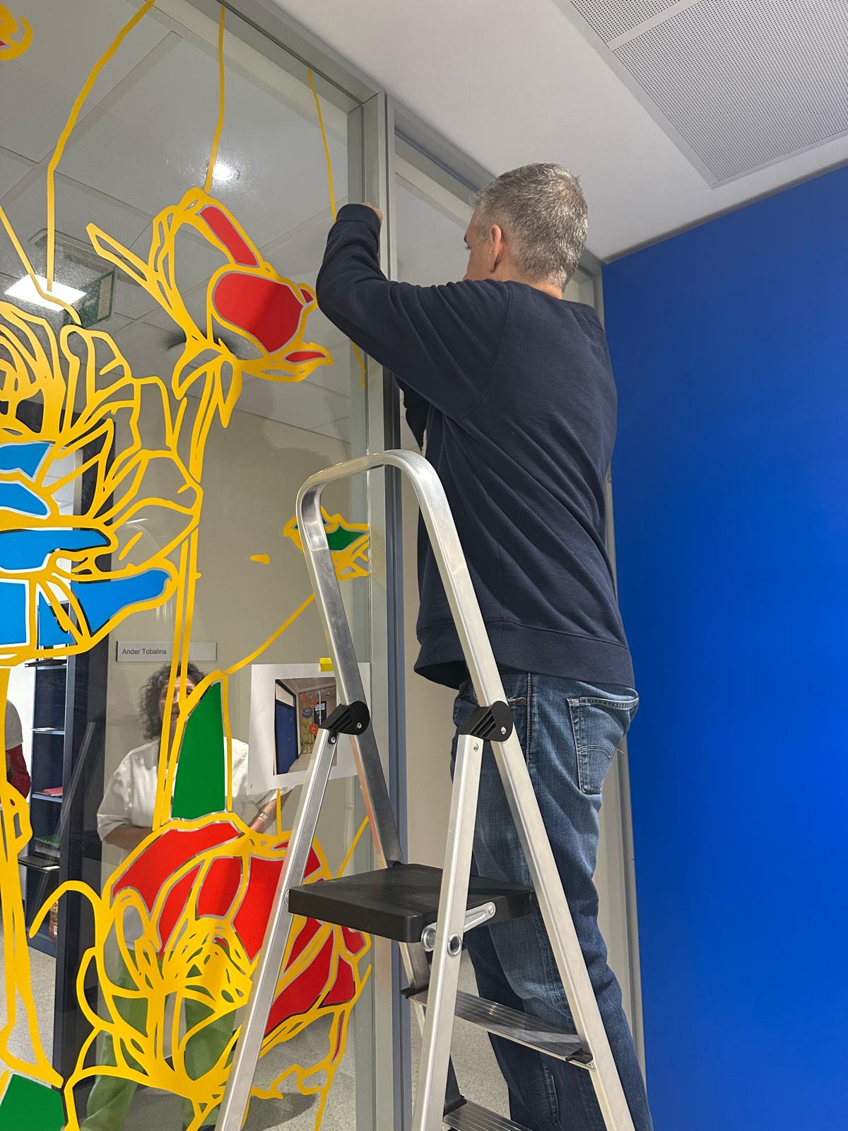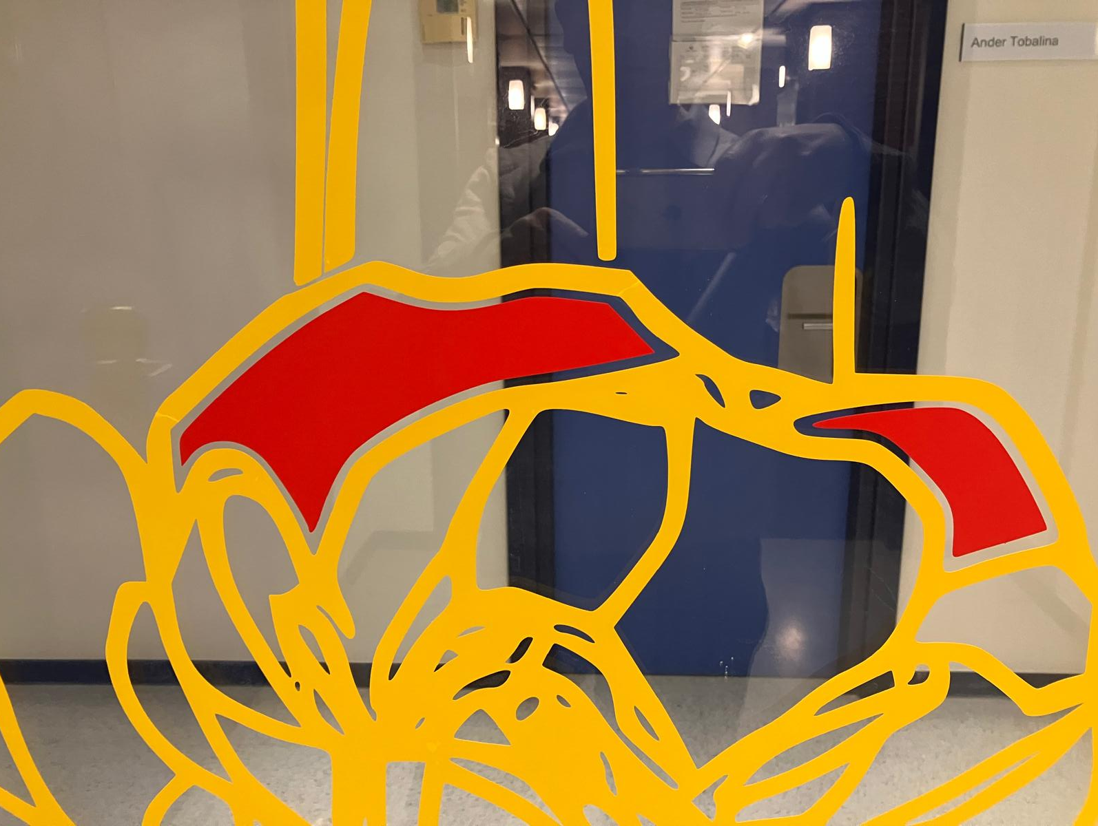 - Técnica: Vinilo traslúcido sobre vidrio, 4 colores