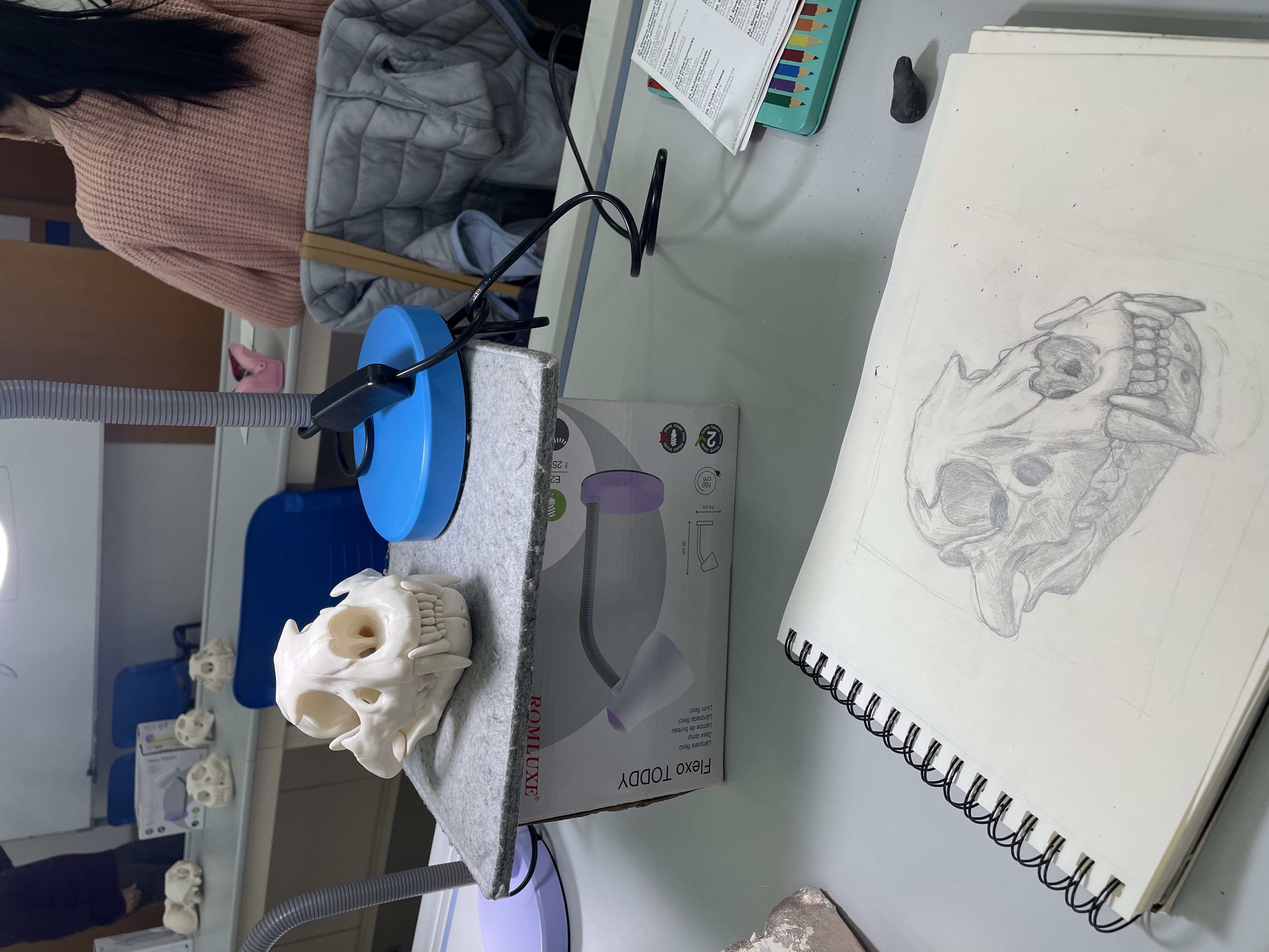 - Representación de fósiles, esqueletos y seres vivos prehistóricos con diferentes técnicas artísticas, principalmente lapiz de grafito.