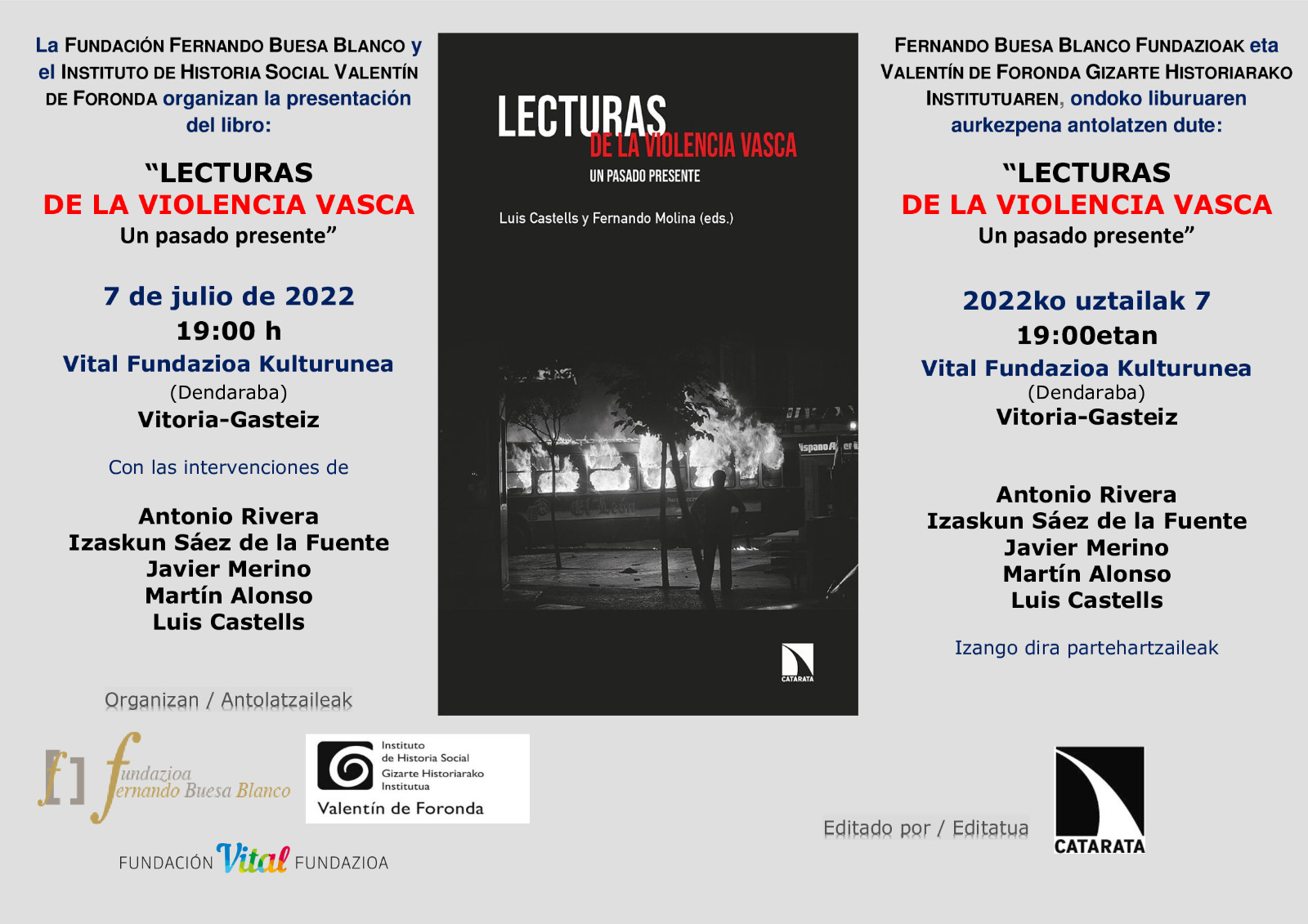 El Instituto de Historia Social Valentín de Foronda, el Departamento de Cultura de la Diputación de Gipuzkoa y Los Libros de la Catarata invitan a la presentación del libro "Lecturas de la violencia vasca. Un pasado presente"