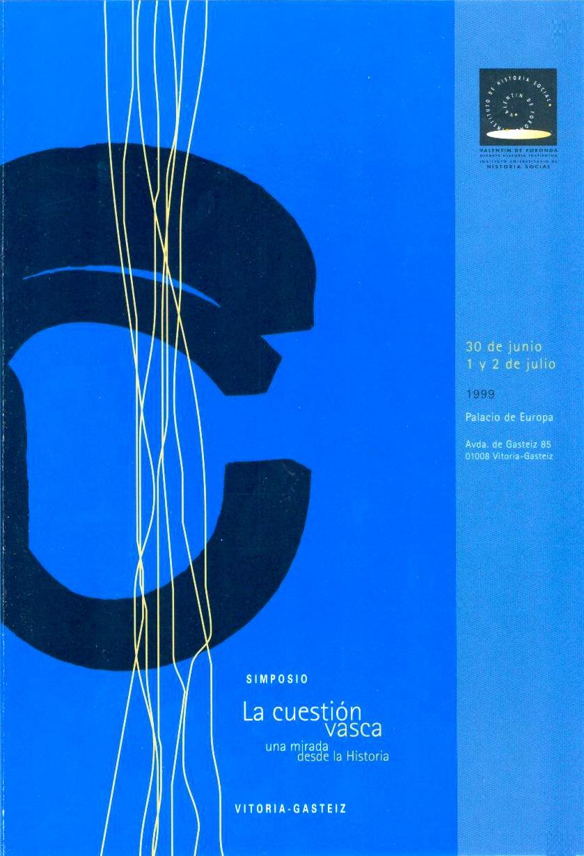 V Simposio del Instituto de Historia Social Valentín de Foronda LA CUESTIÓN VASCA: UNA MIRADA DESDE LA HISTORIA 30 de junio, 1 y 2 de julio de 1999 Palacio de Europa (Vitoria-Gasteiz) (Abre una nueva ventana)Cartel (jpg ,118,59 Kb)