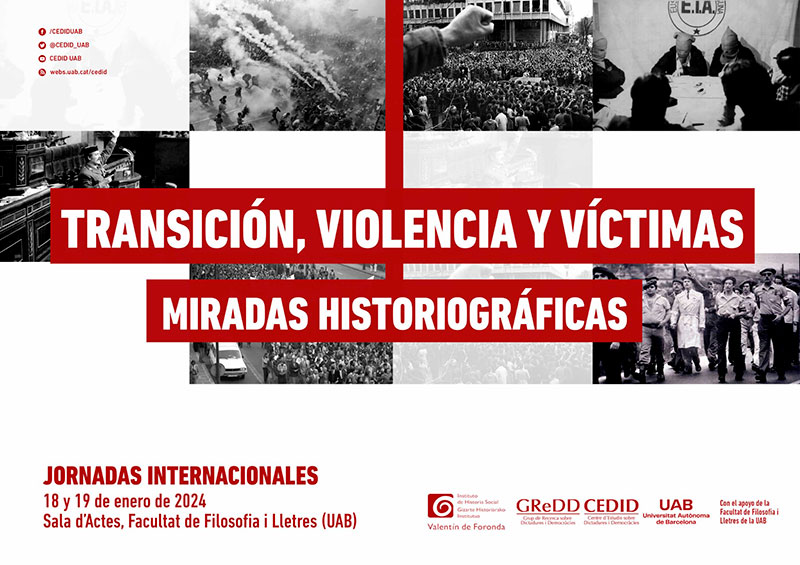 11:30 – 12:15h | “El silencio de las víctimas del terrorismo en el clamor de la Transición”. Raúl López (Centro Memorial de las Víctimas del Terrorismo). Modera: Víctor Aparicio (GReDD-CEDID-UAB).