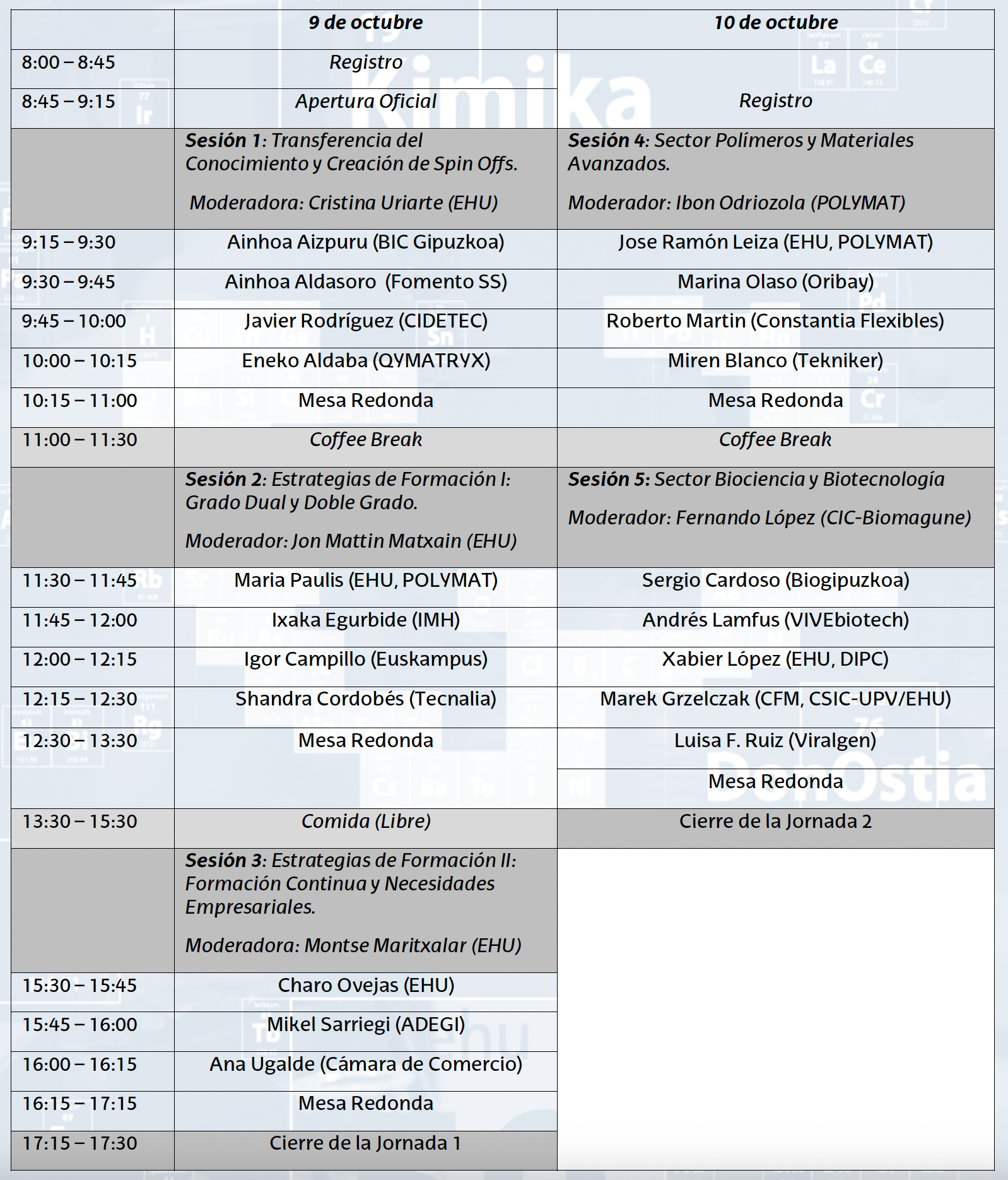 El programa tratará sobre transferencia del conocimiento en las áreas de desarrollo de nuevos materiales y biotecnología, y la posibilidad de nuevas estrategias en formación (grado dual, dobles grados, microcredenciales, formación continua), además de ofrecer a las empresas la posibilidad de colocación de diferentes stands para difundir su actividad.