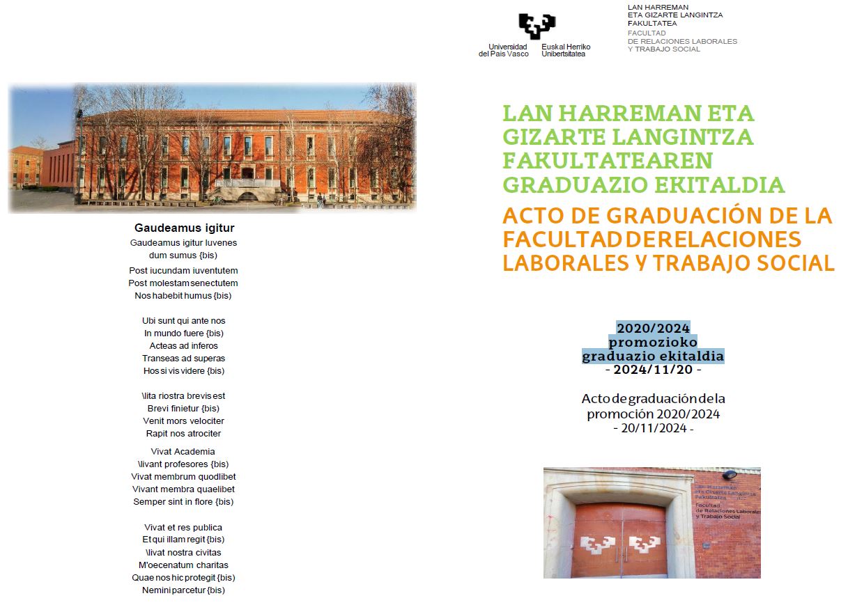 Acto de graduación de la Facultad de Relaciones Laborales y Trabajo Social (promoción 2020-24 del alumnado del Grado en Trabajo Social)