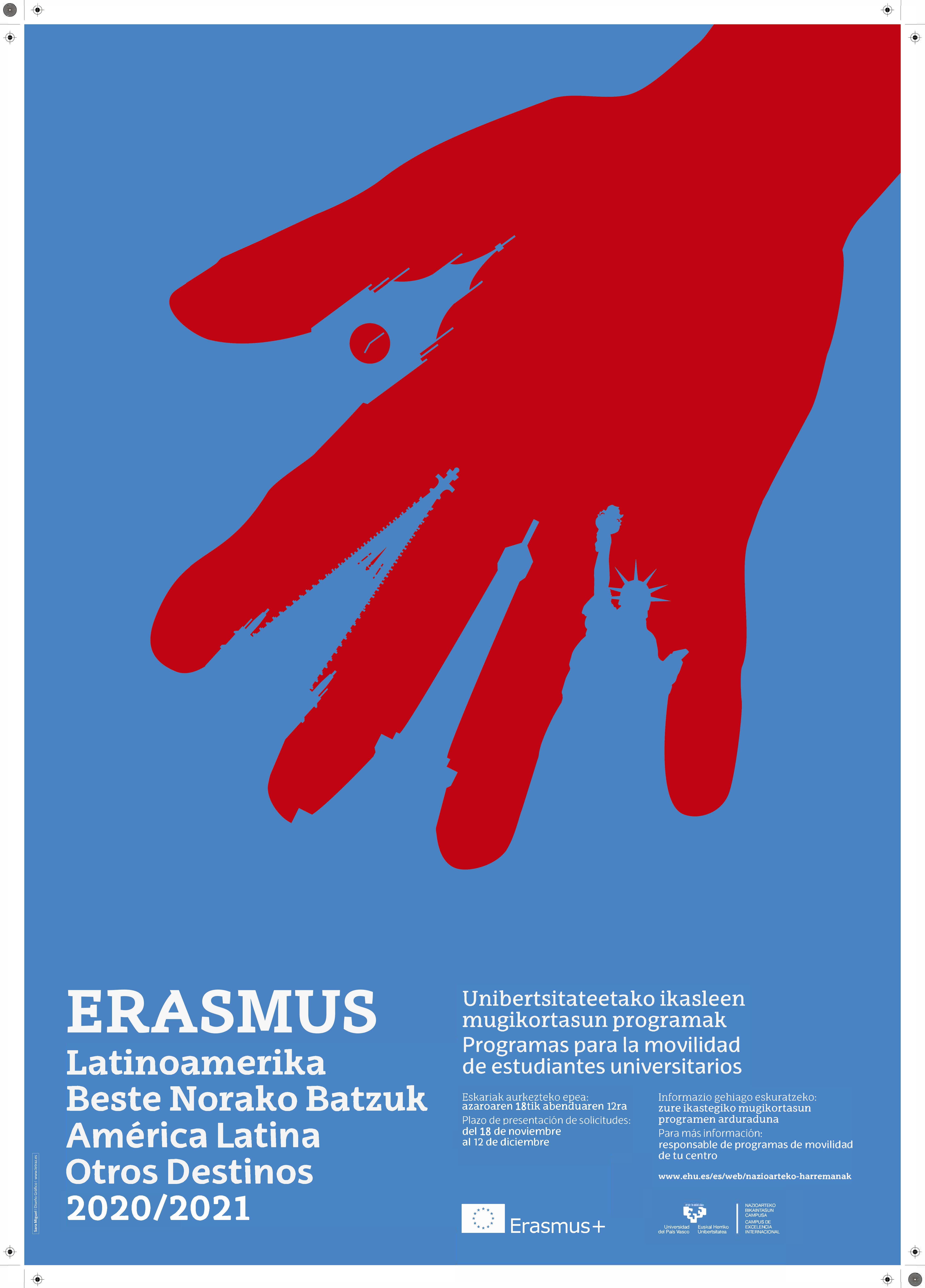 El próximo lunes 18 de noviembre se abrirá el plazo de solicitud de movilidad de Erasmus, América Latina y Otros Destinos para el alumnado UPV/EHU.