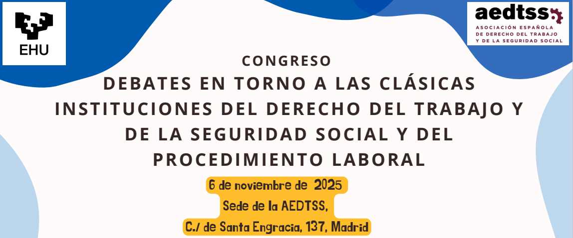 El próximo 6 de noviembre de 2025, celebraremos en Madrid el Congreso titulado "Debates en torno a las clásicas instituciones del Derecho del Trabajo y de la Seguridad Social y del Procedimiento Laboral", en la Sede de la Asociación Española de Derecho del Trabajo y de la Seguridad Social.