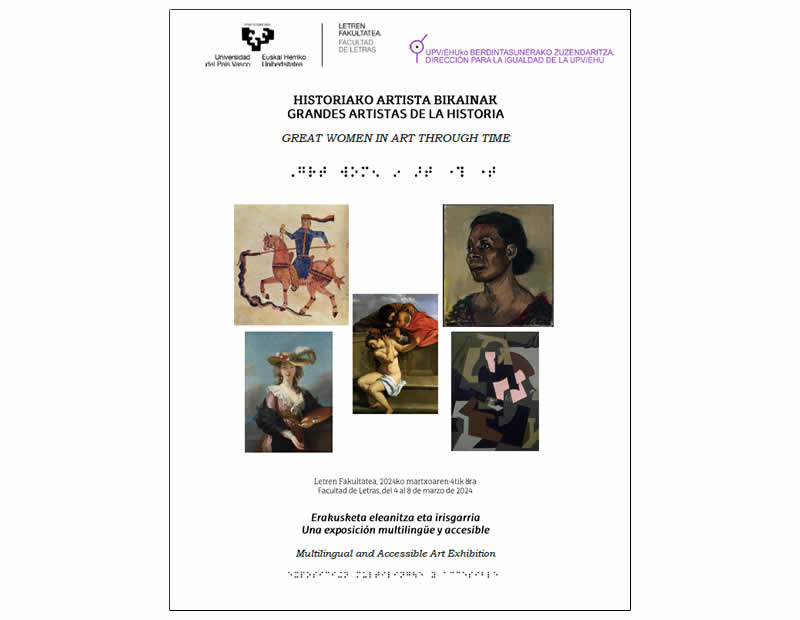 La exposición Grandes artistas de la Historia que inauguramos en el contexto del día de la Defensa de los Derechos de las Mujeres, se ha centrado singularmente en diversas artistas de la Historia, como claras referentes de la cultura de su época y de la huella que han dejado en la Historia del Arte.
