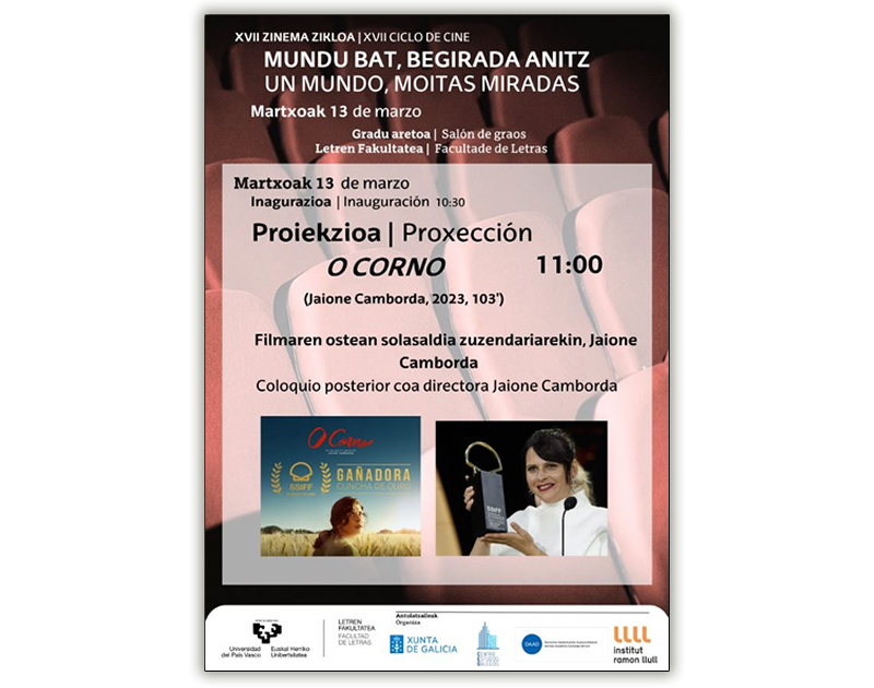 El próximo miércoles 13 de marzo daremos inicio a la decimoséptima edición del ciclo de cine UN MUNDO, MUCHAS MIRADAS, con la proyección del largometraje O Corno (VOSE), ganadora de la prestigiosa Concha de Oro del Festival de cine de San Sebastián. Una vez terminada la proyección, contaremos con la presencia de su directora, Jaione Camborda.