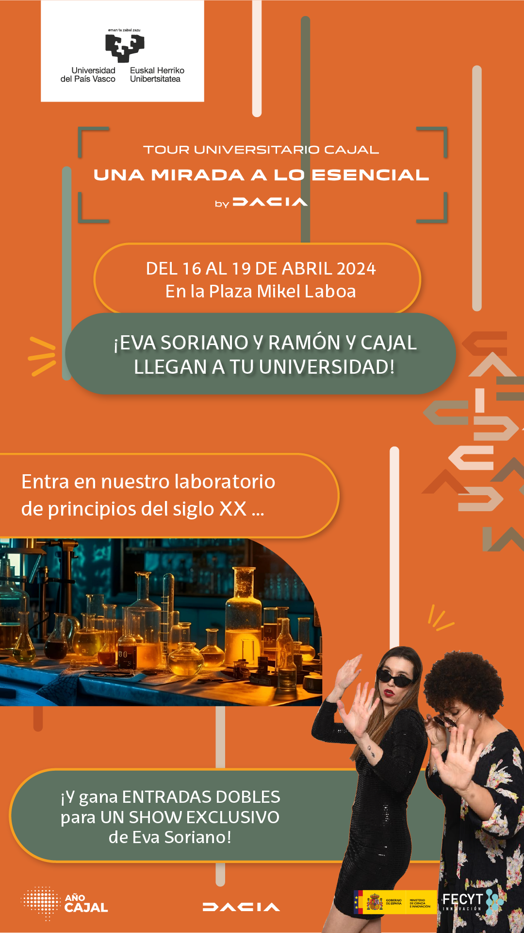 El martes 16 de abril dará comienzo en el campus de Bizkaia (Área de Leioa-Erandio) el Tour Universitario Cajal. La plaza Mikel Laboa será el centro neurálgico del homenaje al médico y premio Nobel Ramón y Cajal, protagonista de un evento que durará cuatro días y que persigue acercar los descubrimientos en ciencia y medicina del recordado científico al estudiantado de la Universidad del País Vasco.