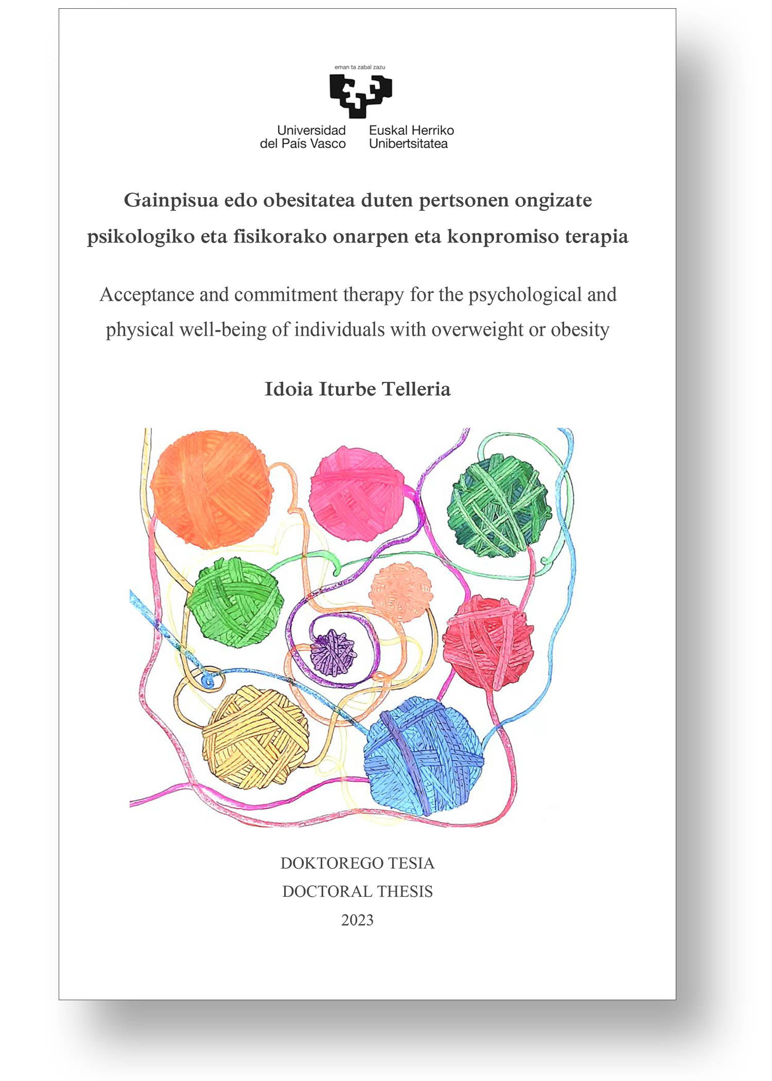 Título de la tesis: “Gainpisua edo obesitatea duten pertsonen ongizate psikologiko eta fisikorako onarpen eta konpromiso terapia / Acceptance and commitment therapy for the psychological and physical well-being of individuals with overweight or obesity”
