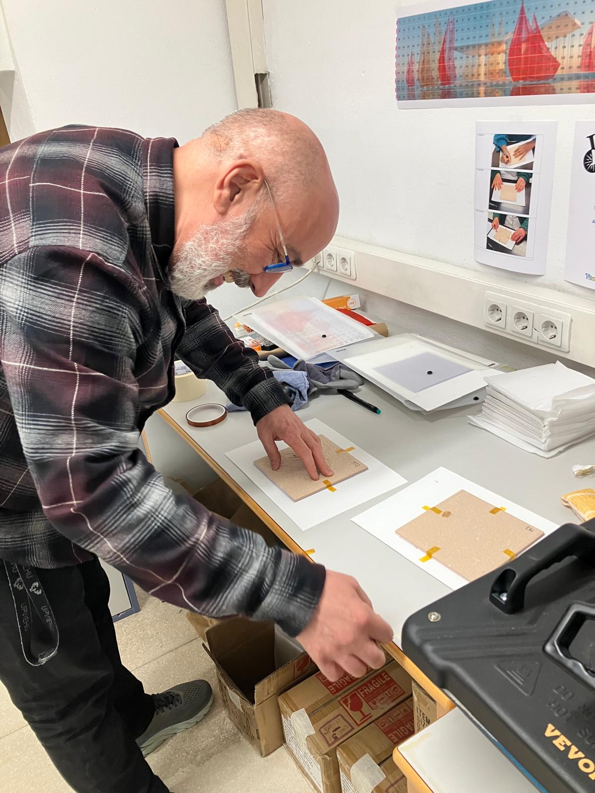 Cada elemento se ha producido mediante sublimación térmica, lo que permite trasladar imágenes digitales a la cerámica con alta precisión cromática. El conjunto, organizado en una retícula de 10 × 34 piezas, queda integrado de forma permanente en el sótano de la Escuela.