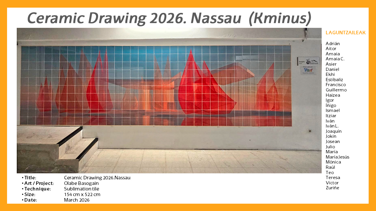 La Escuela de Ingeniería de Vitoria-Gasteiz ha incorporado una nueva pieza a su recorrido de Arte STEAM Colaborativo: Ceramic Drawing 2026.Nassau, una instalación vinculada al proyecto Kminus. La obra se integra en el espacio universitario como un punto de encuentro entre creación artística, docencia e investigación.