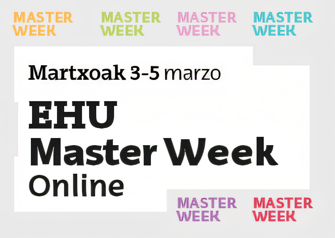 Si estás pensando especializarte y mejorar tus opciones laborales, acércate a conocer nuestros másteres en EHU Master Week, del 3 al 5 de marzo, en horario de 10:00 a 19:00, en formato virtual.