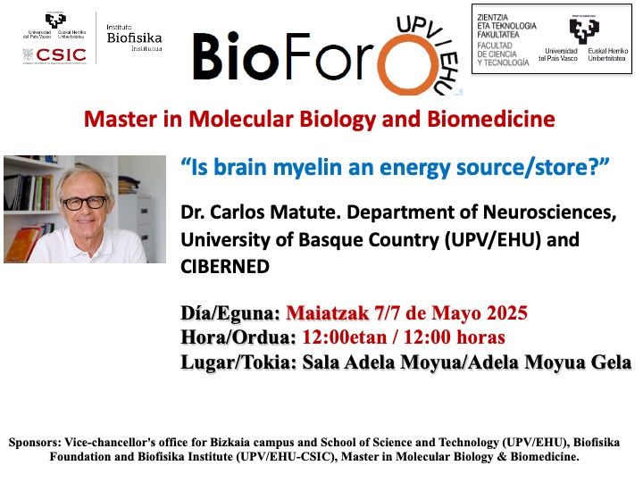 "Is brain myelin an energy source/store?". Dr. Carlos Matute. Department of Neurosciences, University of Basque Country (UPV/EHU) and CIBERNED