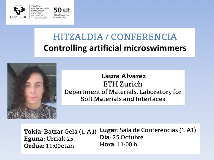 Conferencia "Controlling artificial microswimmers" Laura Alvarez (ETH Zurich) Department of Materials, Laboratory for Soft Materials and Interfaces