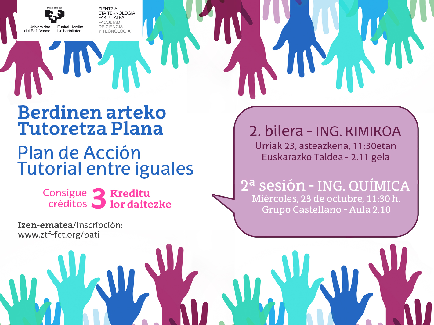 (2ª sesión) Grupo Euskera aula 2.16 - Ing. Química:(2ª sesión) Grupo de castellano aula 2.10