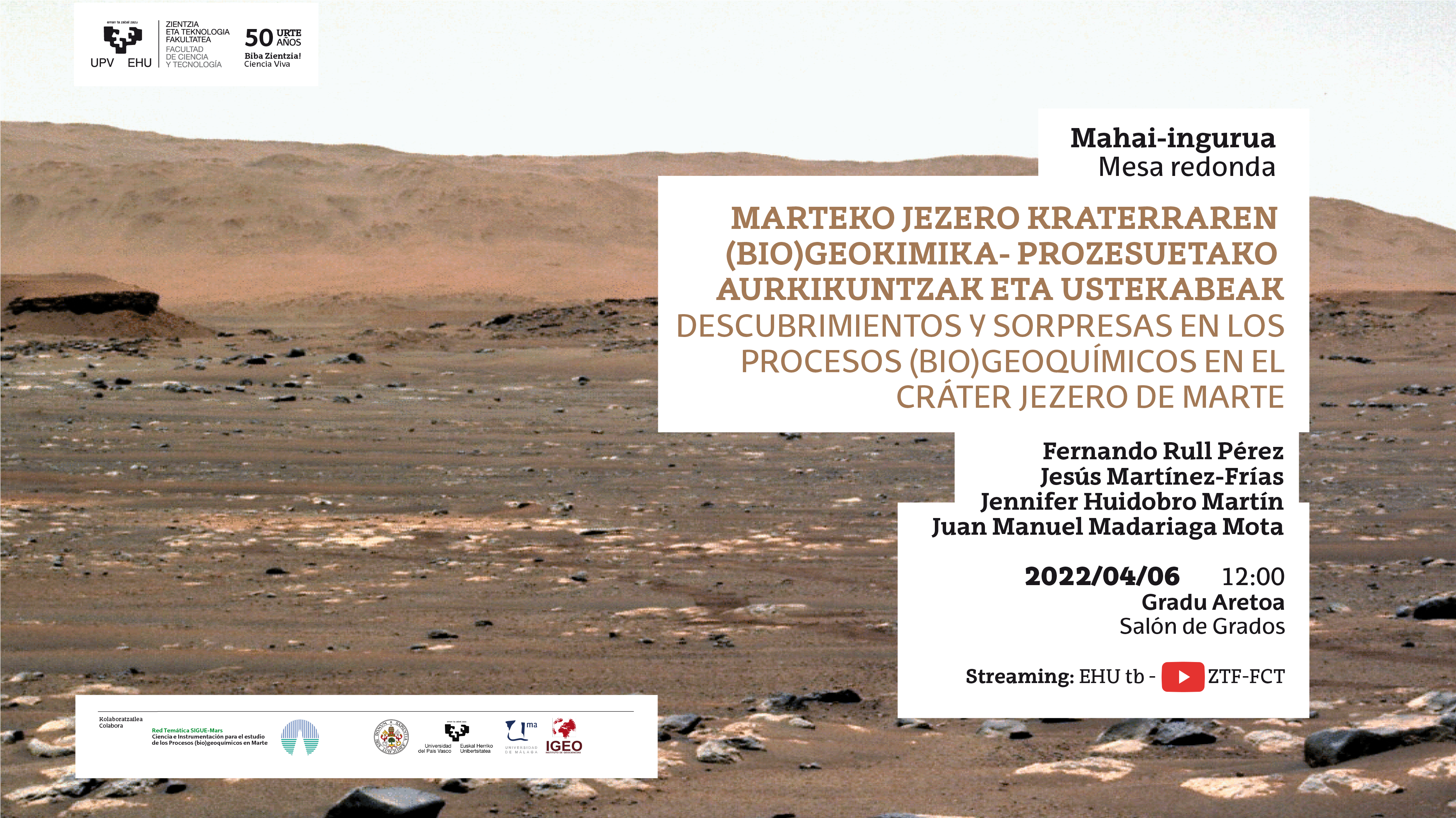 Mesa redonda: DESCUBRIMIENTOS Y SORPRESAS EN LOS PROCESOS (BIO)GEOQUÍMICOS EN EL CRÁTER JEZERO DE MARTE