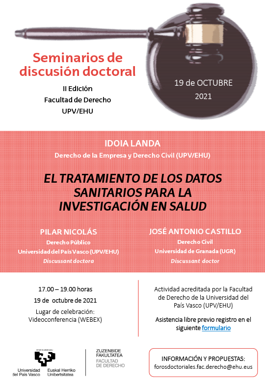 INFORMACIÓN Y PROPUESTAS: forosdoctoriales.fac.derecho@ehu.eus