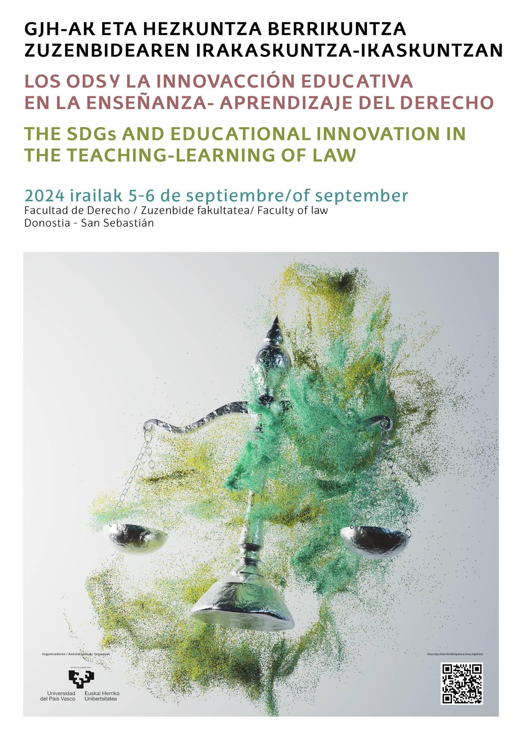 Somos un grupo de profesores y profesoras de la Facultad de Derecho de la UPV/EHU (más de 50, de todas las materias del Grado en Derecho) que, en este momento (periodo 23-24), está implementando un proyecto de innovación docente titulado La institucionalización de los Objetivos de Desarrollo Sostenible en el Grado en Derecho como objetivo, el Aprendizaje Basado en la Investigación como método y las competencias transversales como eje (IKD i3-323-11), seleccionado y patrocinado por el Vicerrectorado de Grado e Innovación Docente de nuestra universidad. Casi a punto de terminar el mismo, con intención de mostrar nuestro trabajo y -prioritariamente- seguir aprendiendo en materia de ODS e innovación docente, hemos organizado un Congreso, en el que tienen cabida todas las ramas del Derecho y en el que, además de ponencias, impartidas por profesorado de distintas universidades españolas, se podrán presentar comunicaciones. Es nuestra intención recoger su contenido en una publicación posterior open access.