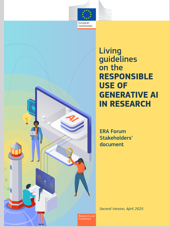 Europako Batzordeak argitaratutako ‘Sorkuntza-AAren erabilera arduratsuari buruzko Gida Bizidunak’ (Living Guidelines) ikerketa-eremuan Adimen Artifizial sortzailearen (AA sortzailea) erabilera etikoa eta arduratsua sustatzeko erreferentzia dinamikoa dira. Dokumentuak arriskuak identifikatzeko eta kudeatzeko orientabide praktikoak eskaintzen ditu, datuen osotasuna, gardentasuna, ikertzaileen erantzukizuna eta zientzia integritatea bermatzeko helburuarekin. Gidak AA sortzailearen erabilerari buruzko gomendio zehatzak jasotzen ditu, hala nola iturri eta eragiketen trazabilitatea, eduki sortuaren egiaztapena, aurreikusitako erabilerei buruzko argitasuna eta ikerketa-komunitatearen parte-hartze aktiboa. ‘Gida bizidunak’ izateak esan nahi du dokumentua etengabe eguneratzen dela, AA sortzailea garatzen den heinean sortzen diren behar berrietara egokituz. Horrela, ikertzaileei eta erakundeei laguntzen die AAren potentziala aprobetxatzen, betiere etika, gardentasuna eta zientzia-ardura errespetatuz.”