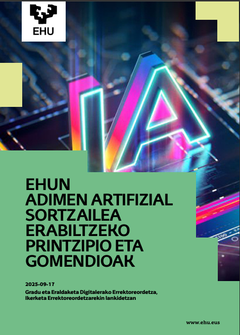 Adimen Artifizial sortzailearen erabilera azkar ari da hedatzen arlo akademiko, zientifiko eta administratiboan. Testuinguru horretan, webgune hau EHUko komunitate osoarentzako gida da: Adimen Artifizial sortzailea modu arduratsuan, etikoan eta lege-esparruarekin bat etorriz erabiltzeko orientabideak eta printzipioak eskaintzen ditu.