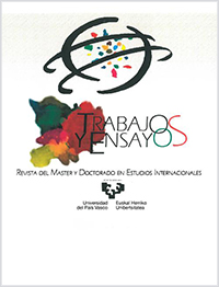 La revista Trabajos y Ensayos es una publicación electrónica del Master y Doctorado en Estudios Internacionales impartidos en el Departamento de Derecho Internacional Público, Relaciones Internacionales e Historia del Derecho de la Universidad del País Vasco/Euskal Herriko Unibertsitatea (UPV/EHU).