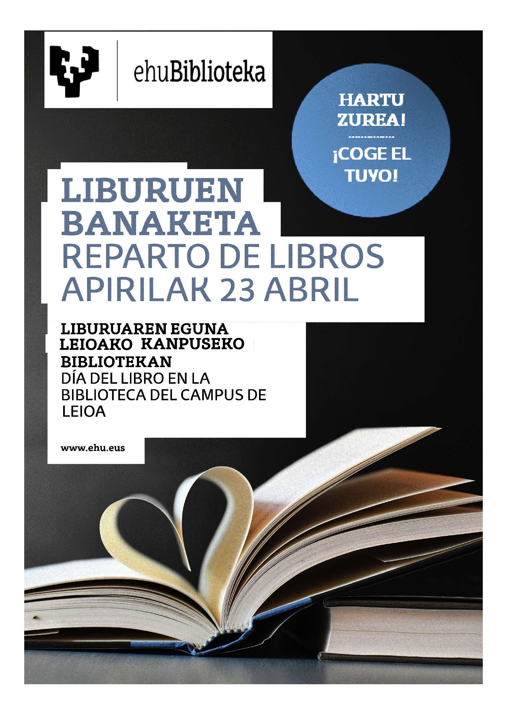 Liburuaren Eguna dela eta, Leioako Campuseko Liburutegiak eta Gipuzkoako Campuseko Liburutegiak liburuak banatzeko jarduera bat antolatu dute, unibertsitate-komunitateari zuzendua, irakurtzeko ohitura sustatzeko.