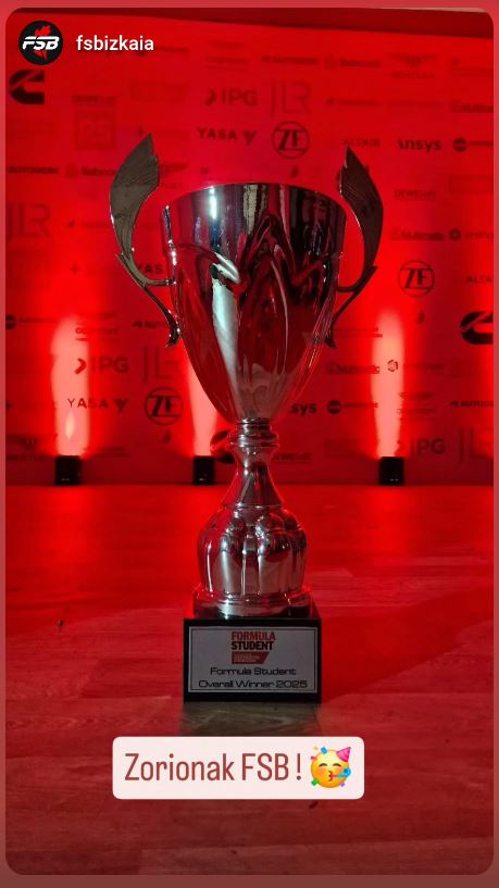 2025/07/20 - Formula Student Bizkaiak bere lidergoa berresten du Silverstonen Lehenengo argitaratze data: 2025/07/21 Facebook bidez partekatu - (Beste leiho bat zabalduko du) Bluesky bidez partekatu - (Beste leiho bat zabalduko du) Linkedin bidez partekatu - (Beste leiho bat zabalduko du) Whatsapp bidez partekatu - (Beste leiho bat zabalduko du) Telegram bidez partekatu - (Beste leiho bat zabalduko du) Bidali mezu elektroniko bidez - (Beste leiho bat zabalduko du) Esteka kopiatu - (Beste leiho bat zabalduko du) 2025/07/22 - El Correo - El monoplaza de los futuros ingenierosde la UPV/EHU gana en la carrera de Inglaterra 2025/07/21 - Hoy por hoy Bilbao-Bizkaia - Cadena Ser - Entrevista con Eduardo García, Team-Lider del equipo FSB en Silverstone 2025/07/21 - Formula Student Bizkaiak irabazten du Silverstonen 2025/07/18 - Ser Euskadi - Cadena Ser - El monoplaza de Formula Student Bizkaia camino a reafirmar su primer puesto del pasado año, este fin de semana en la primera prueba de Silverstone.