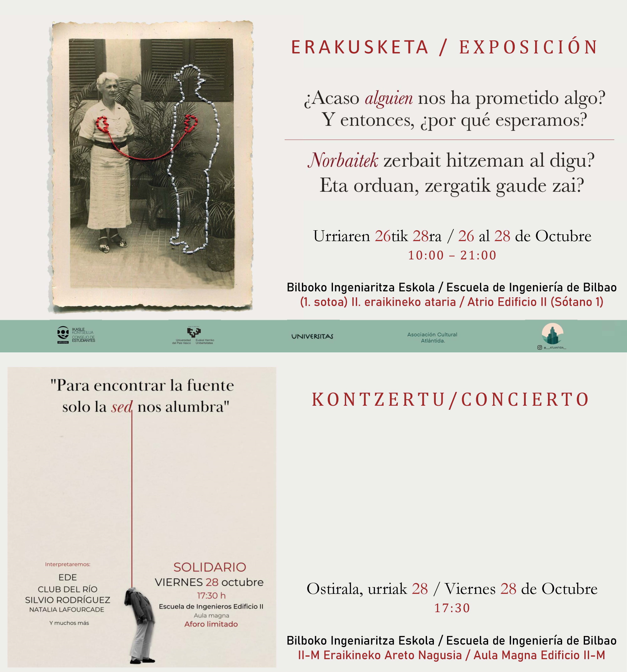 Erakusketa Atlantida Kultur Elkartea - Erakusketa eta Kontzertua Data Noiztik 2022/10/26 Noiz arte 2022/10/28 Dokumentuak (Beste leiho bat zabalduko du)Atlantida Kultur Elkartea - Erakusketa + Kontzertua (pdf ,833,17 Kb) (Beste leiho bat zabalduko du)Atlantida Kultur Elkartea - Erakusketako kartela (jpg ,1,38 Mb) (Beste leiho bat zabalduko du)Atlantida Kultur Elkartea - Kontzertuaren kartela (png ,2,70 Mb)