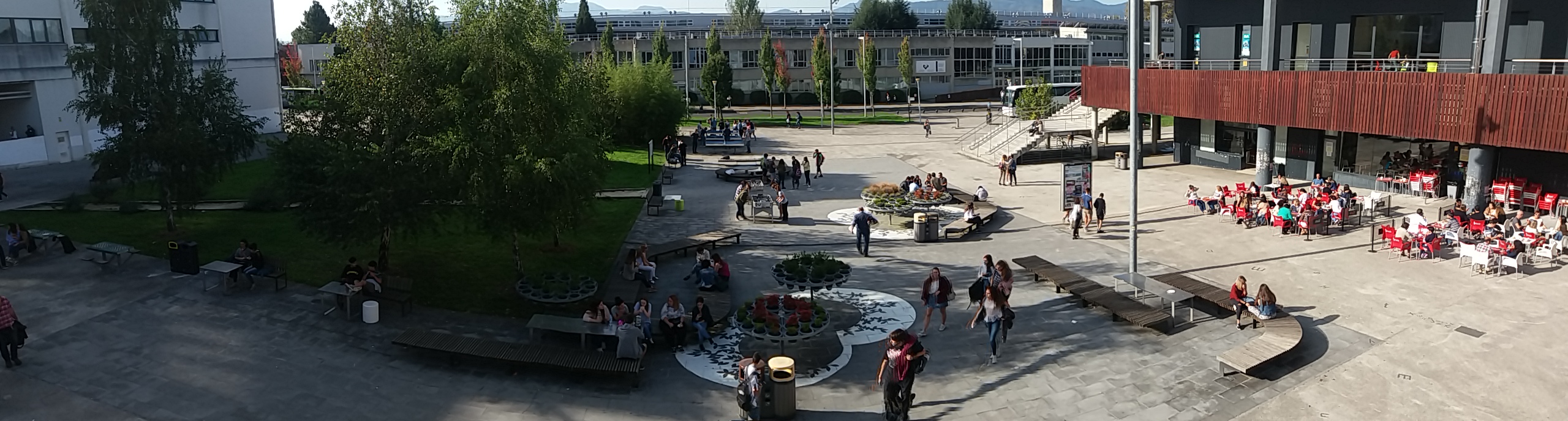 Campusaren erdi-erdian dago, mugimendu handikoa, eta bertan daude merkataritza gunea eta kafetegi gehienak.