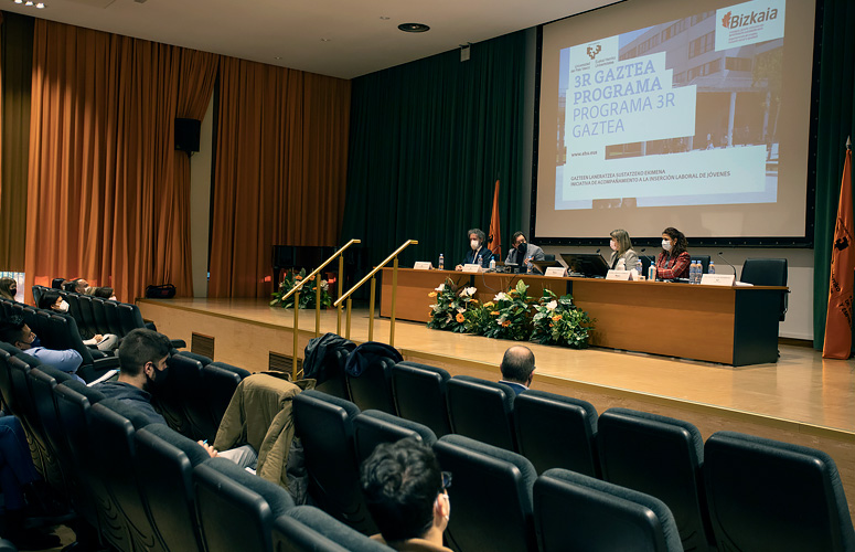 Euskal Herriko Unibertsitateko Ekonomia eta Enpresa Fakultatean 3R GAZTEA programa aurkeztu da, UPV/EHUn graduatu berri diren 90 pertsonari laguntza aktiboa emateko programa berria, prestakuntzatik lan-merkatura igarotzea errazteko. Ekitaldian parte hartu dute Teresa Laespada Bizkaiko Foru Aldundiko Enplegu, Gizarteratze eta Berdintasuneko diputatuak eta Fernando Tapia Ikasle eta Enplegagarritasunaren arloko errektoreordeak. Ekitaldian izan dira, halaber, Jon Barrutia, Ekonomia eta Enpresa Fakultateko dekanoa; Susana González, Bizkaiko Enpleguko foru zuzendari nagusia; eta Erlantz Allur, UPV/EHUko Praktiken, Prestakuntza Dualaren eta Enplegagarritasunaren arloko zuzendaria.