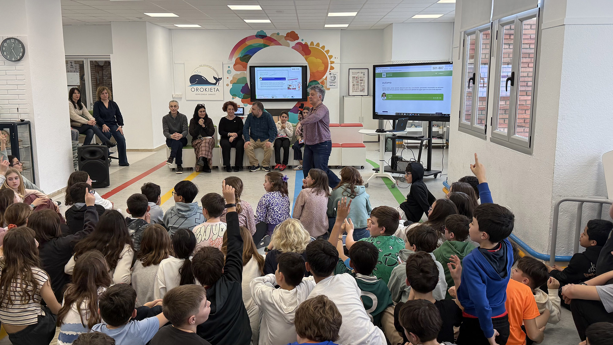 Diximet-en euskarazko bertsioari ahotsa jarri diote Zarauzko Orokietako 80 ikaslek, irakasleen laguntzarekin. Ikastetxean daukaten irrati estudioetan grabatu dituzte. Ikasleetako bik ere parte hartu dute aurkezpenean. LHko 6. mailako Nahiak eta Beñatek azaldu dutenez, asko ikasi dute ekimenarekin, tarteka definizioen grabaketak errepikatu behar izan dituzten arren, “batzuk beste batzuk baino zailagoak zirelako azaltzeko”. Arantzazu Fernandez de Arroiabe, Orokieta Herri Eskolako Ikasketa buruak esker ona adierazi die ekimenean parte hartzeagatik eta erakutsiko arduragatik. Gurasoetako batzuk ere izan dira gaurko aurkezpenean.