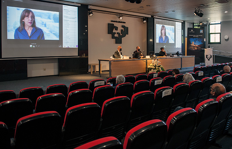 Ekitaldian Eva Ferreira errektoreak hartu zuen parte: ikasle graduatu berriak zoriondu zituen eta eskerrak eman zizkien omendutako langile erretiratu berriei. "Uste dut bere benetako neurrian baloratu behar dugula honelako ekitaldi bat egitea: pandemia gorabehera bizitza akademikoak aurrera jarraitzen duela erakusten digu, eta zailtasunak zailtasun, zuen proiektu akademikoa ez dela gelditu, eta bidearen beste etapa bat arrakastaz amaitu duzuenaren seinale dugu", gaineratu du.