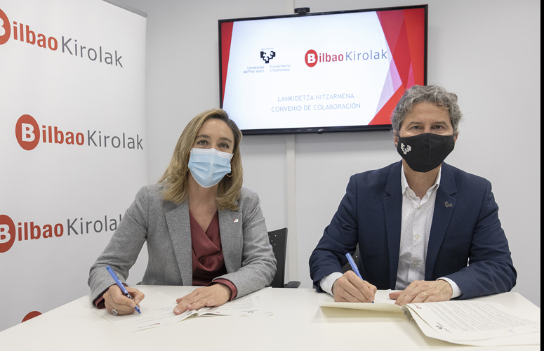 Gaur goizean sinatu dute Bilbao Kirolak-en bulegoetan Itxaso Erroteta Bilboko Udaleko Gazteria eta Kiroleko zinegotziak eta Asier Romero UPV/EHUko Bilboko Hezkuntza Fakultateko dekanoak.