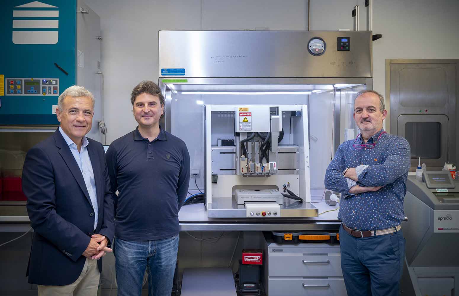 José Luis Pedraz Muñoz NanoBioCel ikertaldeko ikertzaile nagusi eta 'Euskal Herriko Unibertsitatea-Tecnaliako Bioinprimatze Unitateko' zuzendari zientifikoak gonbidatuta, Gil Rodas Font eta Mario Marotta Baleriola bisitari izan ziren birsortze medikuntzako eta kirolarien lesioetako adituek Euskal Herriko Unibertsitateko ikertalde horrek Arabako Campuseko Lascaray Ikergunean dituen instalazioetan.