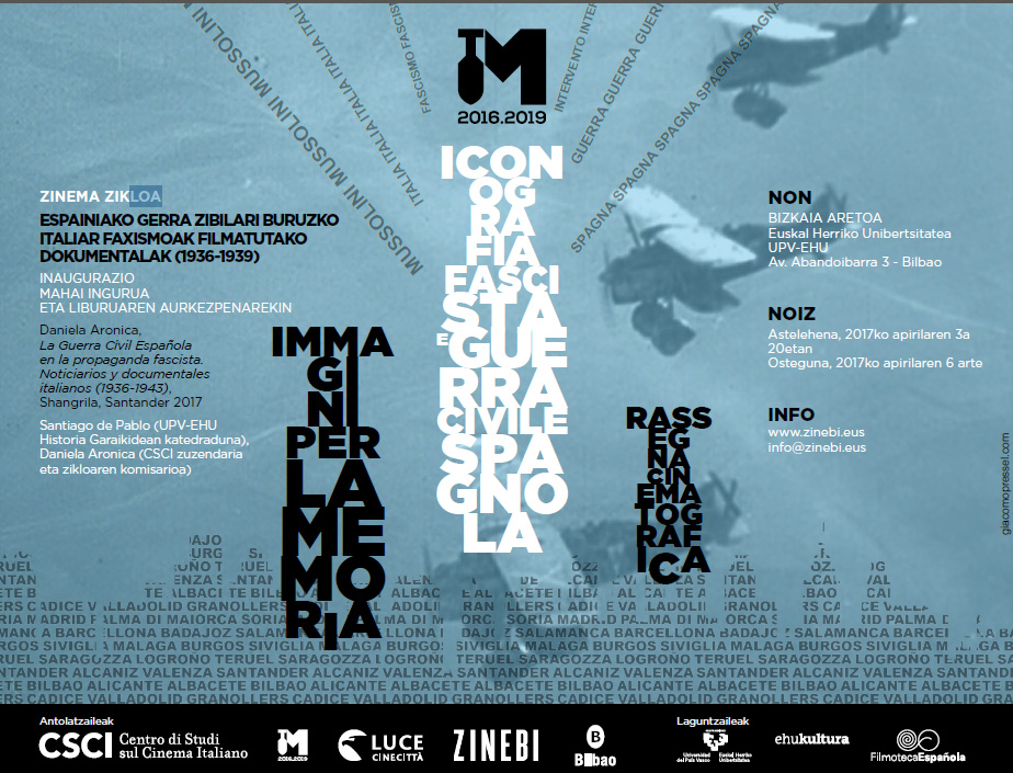 Halaber, astelehenean, inaugurazio egunean, zikloaren komisario Daniela Aronicaren ‘La Guerra Civil Española en la propaganda fascista. Noticiarios y documentales italianos (1936-1943)' liburua aurkeztuko da. Bukatzeko, Aronicak mahai-inguruan parte hartuko du UPV/EHUko Historia katedradun Santiago de Pablorekin batera.