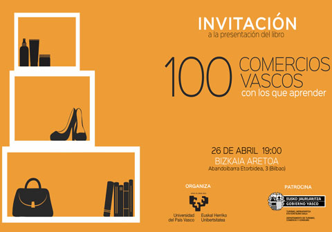 Asteazkenean, apirilaren 26an, 19:00etan, Bizkaia Aretoan (Abandoibarra, 3. Bilbao) ‘100 comercios vascos con los que aprender' liburuaren aurkezpena egingo da. Gonbidapena behar da sartzeko.