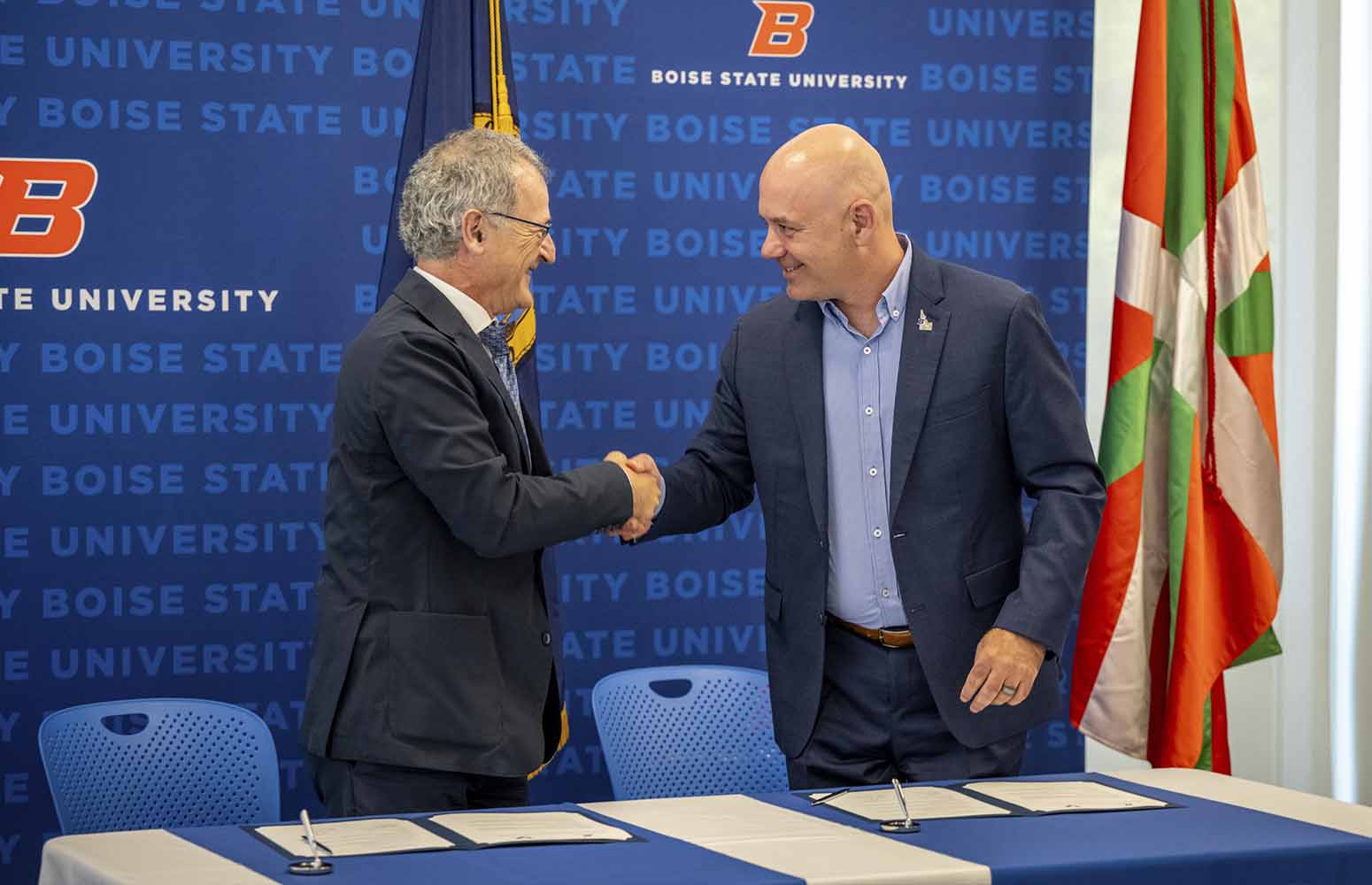 Euskal Herriko Unibertsitateko (EHU) errektore Joxerramon Bengoetxeak eta Boise State Universityko jarduneko errektore Jeremiah Shinnek sinatu dute Elkar Ulertze Memoranduma (MOU), bost urtean behin ospatzen den Jaialdiren testuinguruan. Modu horretan, unibertsitate biek adierazi dute elkarrekin lan egiteko asmoa Itsas-Gaindiko Campusaren baitan. Marko dinamiko eta berritzaile bat eskainiko du nazioarteko lankidetzarako hezkuntzaren, ikerketaren, ikasleen mugikortasunaren eta ezagutzaren transferentziaren inguruko erronka partekatuetan. Memorandumak finkatutako interes komunen inguruan garatuko dira, hain justu, datozen hilabeteetan martxan jarriko diren proiektuak. Sinatze ekitaldian, unibertsitate bietako kideekin batera Eusko Jaurlaritzaren Kanpo Harremanetarako eta Euskadi Globaleko idazkari nagusi Ander Caballero ere izan da.
