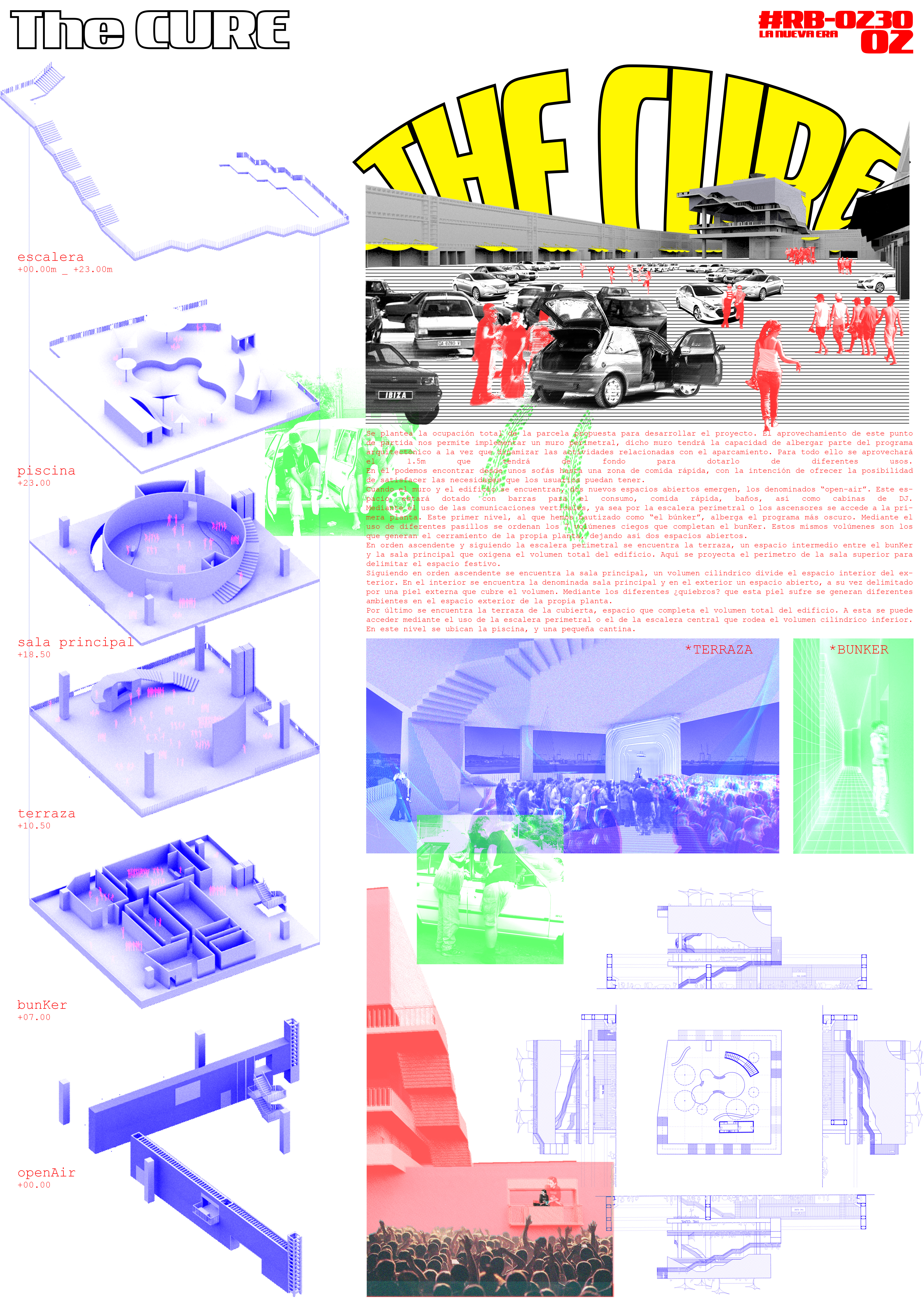 Proposamen sarituak “The Cure” du izena eta Martina Gardeazabal Beascoa, Iñigo Jimeno Fraca, Ivan March Calvo eta Elena Millán Medel ikasleek aurkeztu dute; proiektua garatzeko proposatutako orube osoa okupatzea proposatzen du. “Abiapuntu hori aprobetxatzeak aukera ematen digu horma perimetral bat ezartzeko; horma horrek programa arkitektonikoaren zati bat hartu ahal izango du, eta, aldi berean, aparkalekuarekin lotutako jarduerak dinamizatzeko balioko du. Horretarako guztirako, 1,5 m-ko sakonera aprobetxatuko da, eta hainbat erabilera emango zaizkio. Bertan, sofa batzuk edota janari lasterreko gune bat egongo dira, erabiltzaileek izan ditzaketen beharrei erantzuteko”.