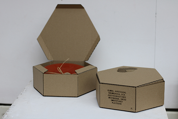 Packaging baten diseinua eta June Larzabalek buztinez egindako plateren ezaugarritze grafikoa ere barne hartzen ditu proiektuak. Argazkia: UPV/EHU