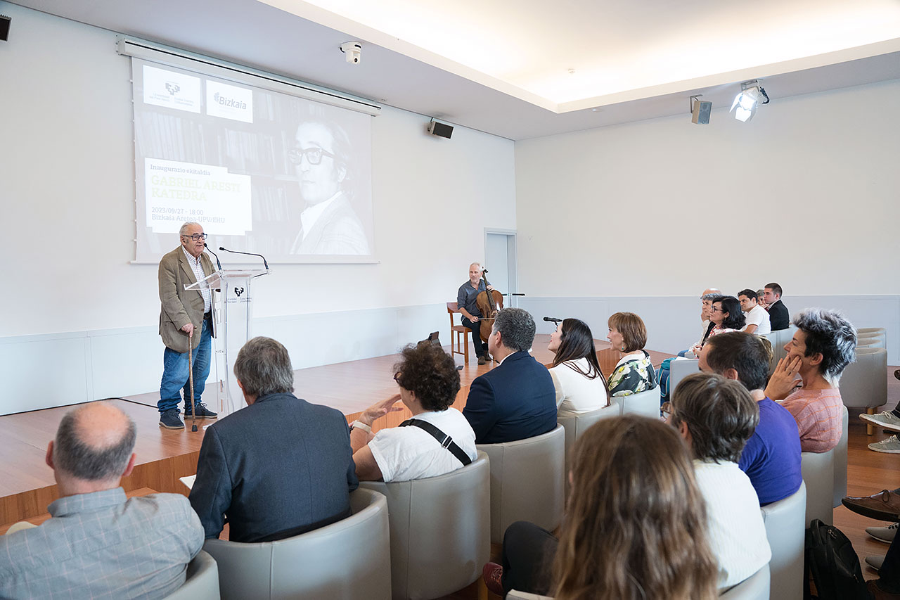 Atzo, irailak 27, Bizkaia Aretoan Gabriel Aresti Katedra aurkezpen ekitaldia ospatu zen. Katedra Euskal Herriko Unibertsitateak (UPV/EHU) sortu du, Bizkaiko Foru Aldundiarekin elkarlanean. Inauguratzeko egin zen ekitaldian hitzaldiak, Gabriel Arestiren poemen irakurketa eta Pello Ramirezen musika tartekatu ziren.