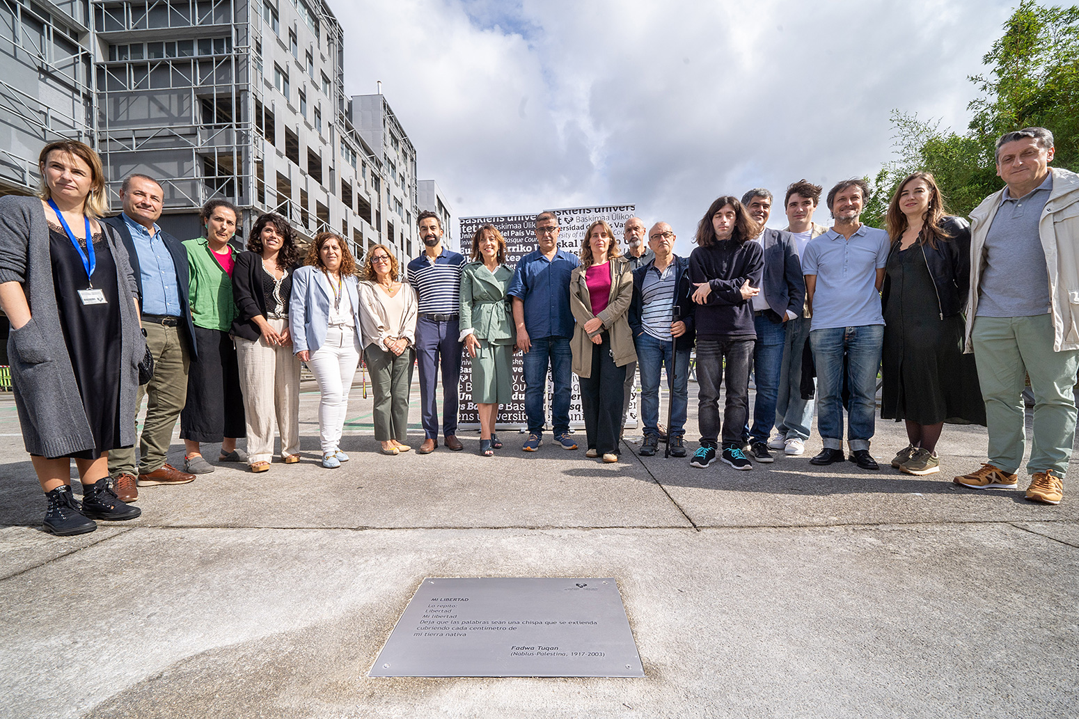 Bizkaiko Campuseko Poesiaren Bideak, Leioan, Fadwa Tuqan (Nablús. Palestina 1917-2003) poeta palestinarraren “Nire askatasuna” poema jasotzen duen plaka berri bat dauka gaurtik aurrera (irailak 4, asteazkena). Mikel Laboa plazan jarri da eta bertan egin dute aurkezpen ekitaldia. Ekitaldian izan dira: Eva Ferreira errektorea, Barbara Ruiz Euskadiko UNRWAko ordezkaria (Palestinako Errefuxiatuentzako Nazio Batuen Agentzia, Ekialde Hurbilean), UPV/EHUko ikasleen zenbait ordezkari, eta Issammh Abushammal Farmazia Fakultateko irakasle palestinarra; azken honek irakurri du olerkia ekitaldian.